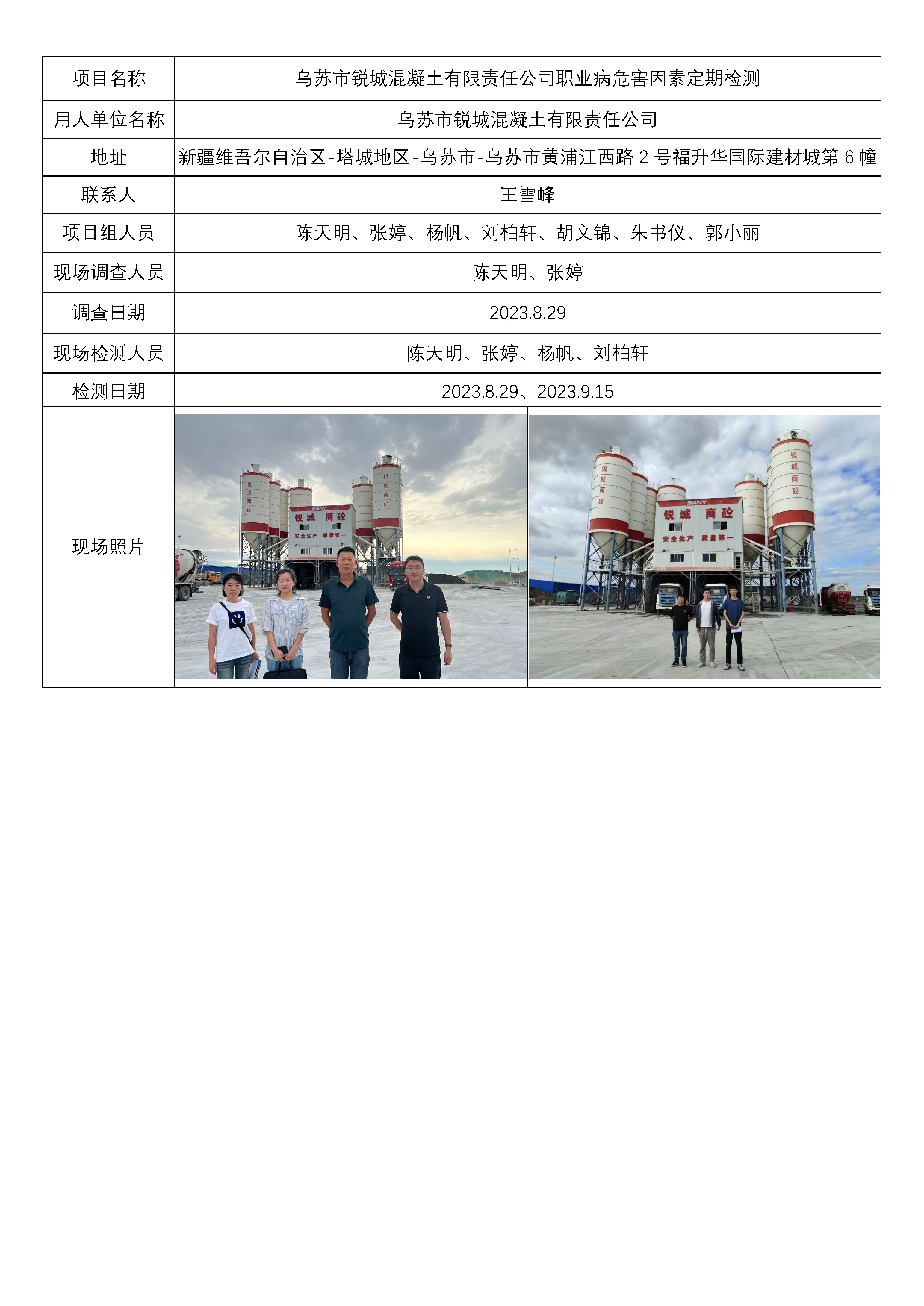 乌苏市锐城混凝土有限责任公司职业病危害因素定期检测