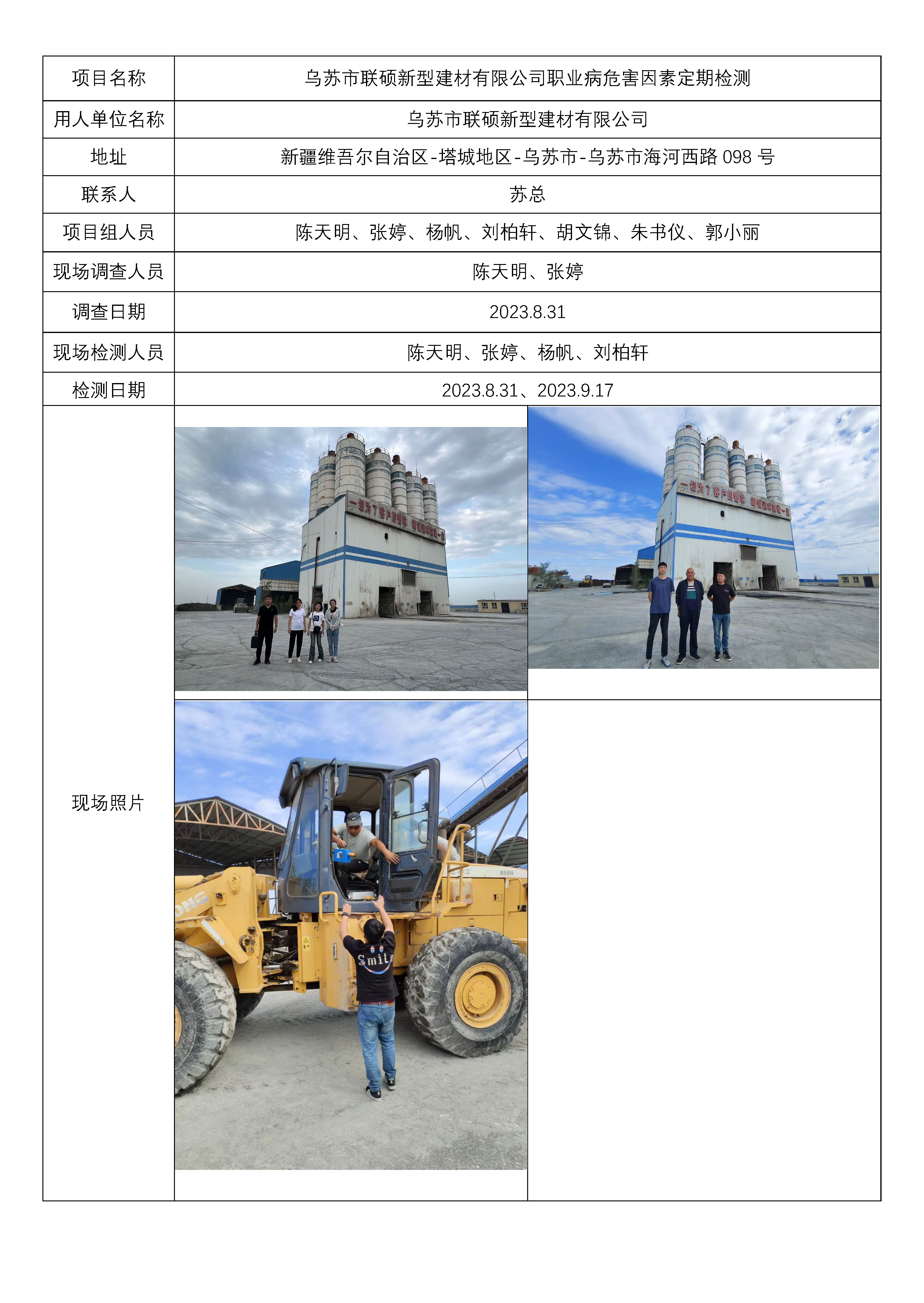 乌苏市联硕新型建材有限公司职业病危害因素定期检测