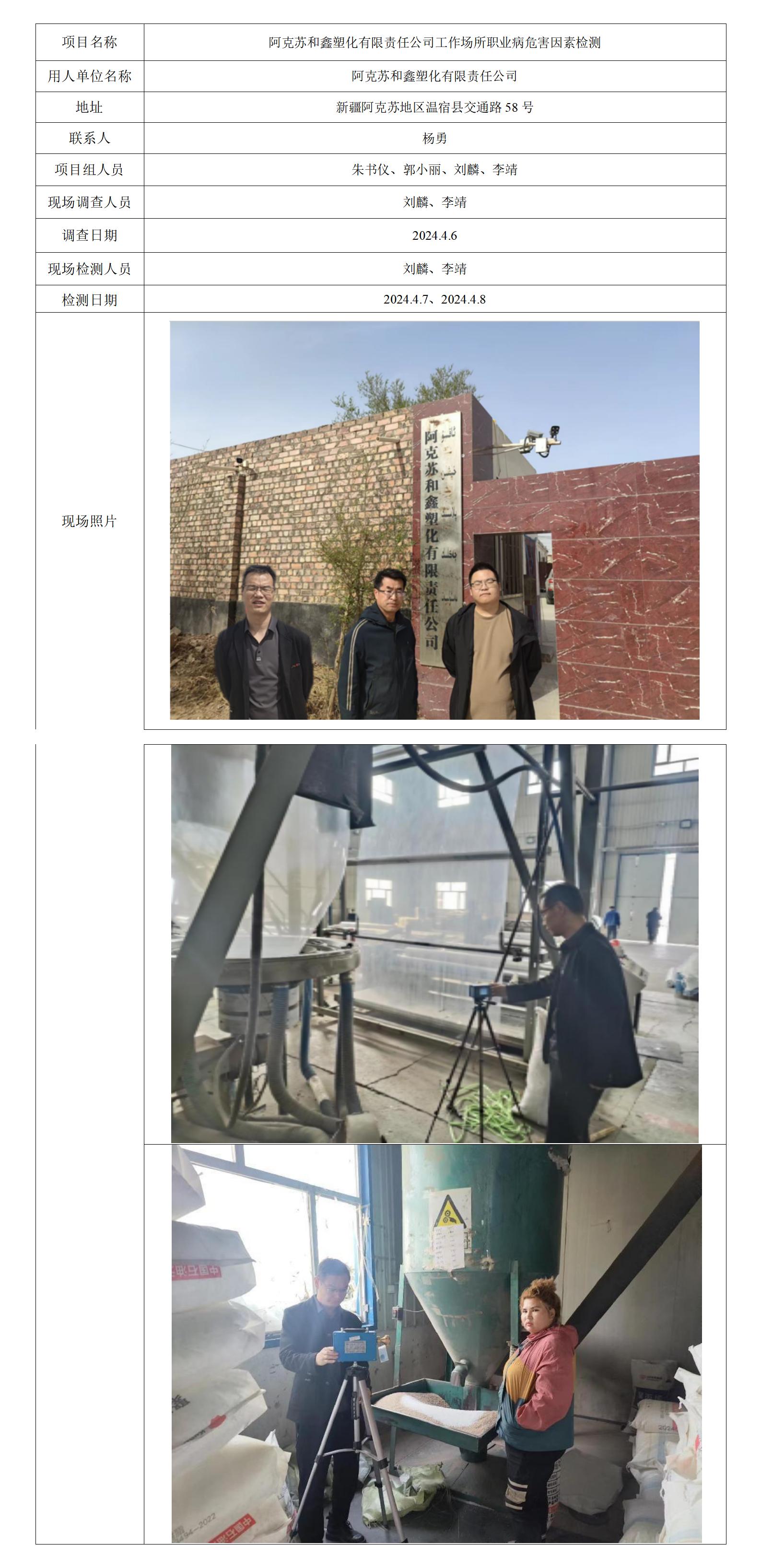 阿克苏和鑫塑化有限责任公司工作场所职业病危害因素检测