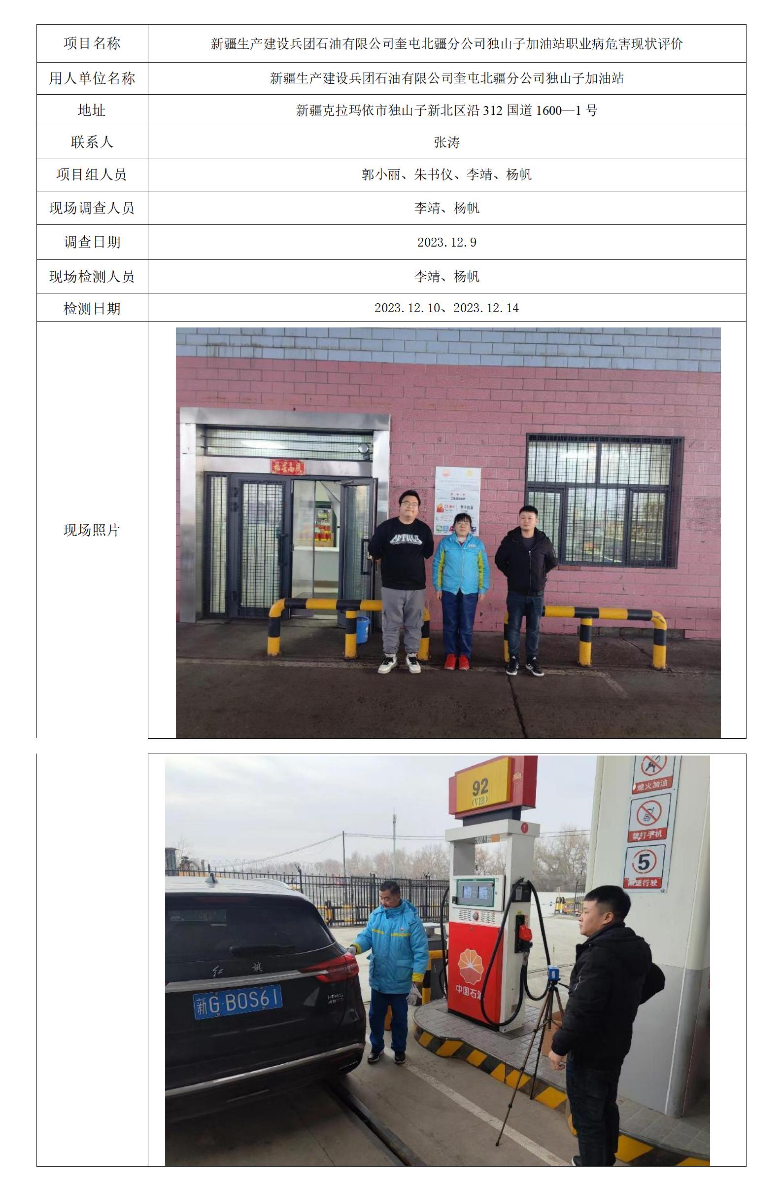 新疆生产建设兵团石油有限公司奎屯北疆分公司独山子加油站职业病危害现状评价