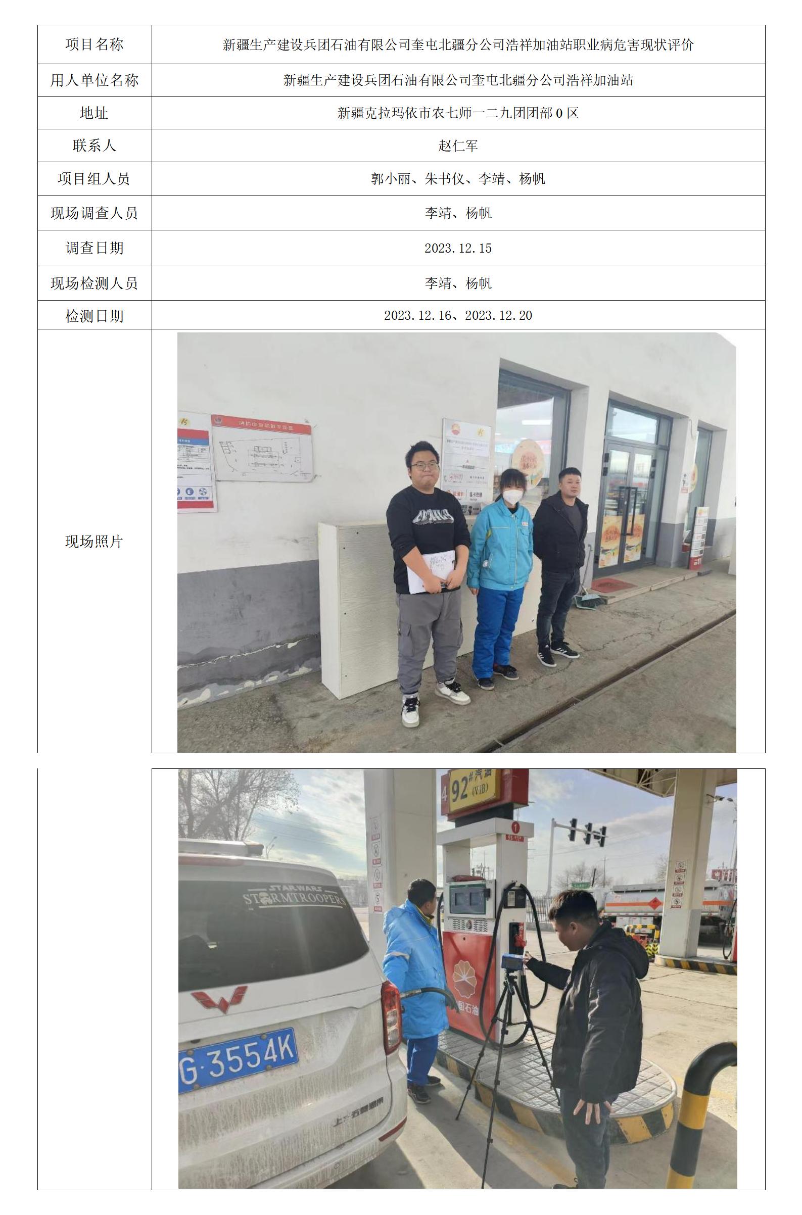 新疆生产建设兵团石油有限公司奎屯北疆分公司浩祥加油站职业病危害现状评价