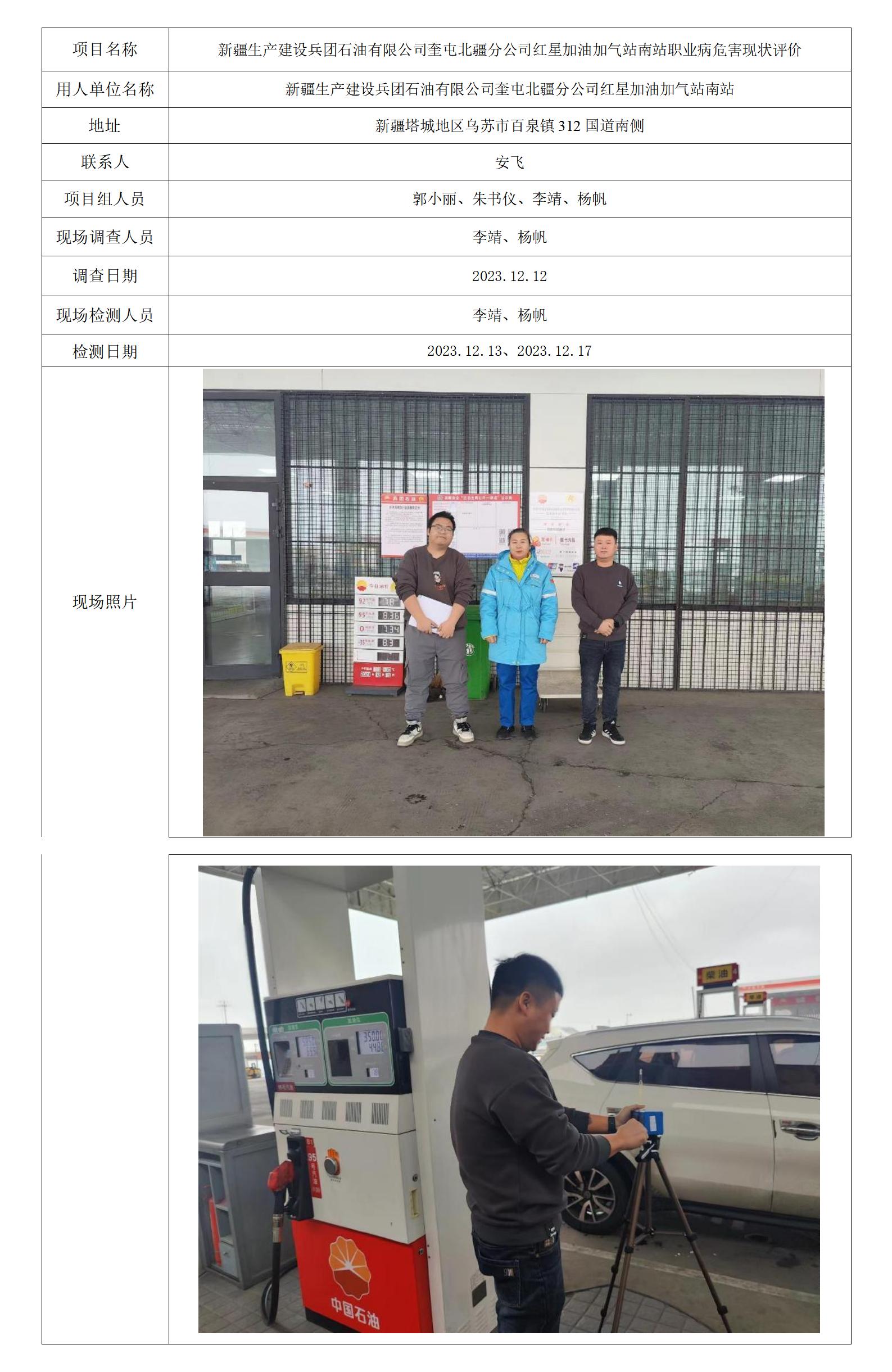 新疆生产建设兵团石油有限公司奎屯北疆分公司红星加油加气站南站职业病危害现状评价