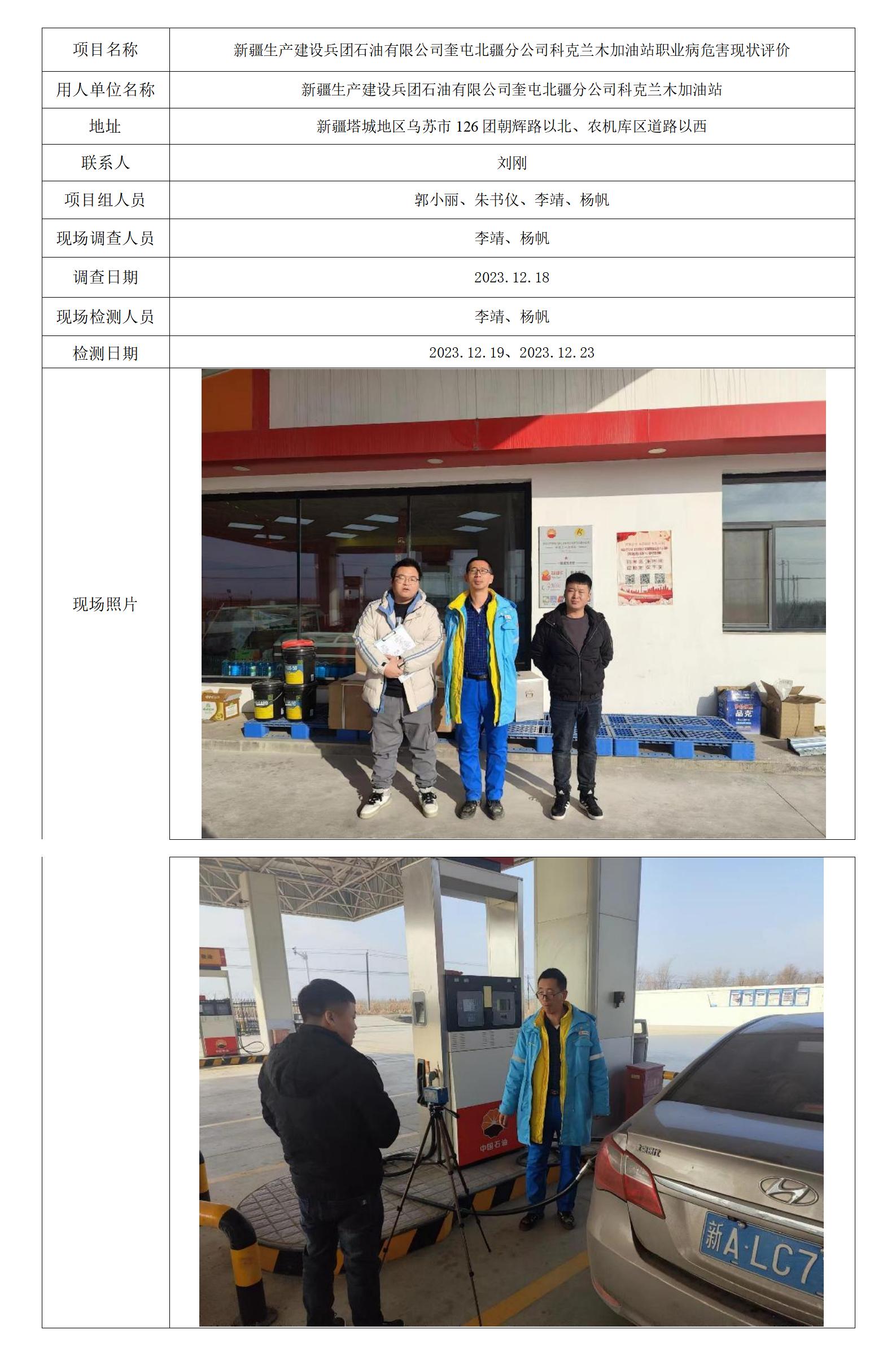 新疆生产建设兵团石油有限公司奎屯北疆分公司科克兰木加油站职业病危害现状评价