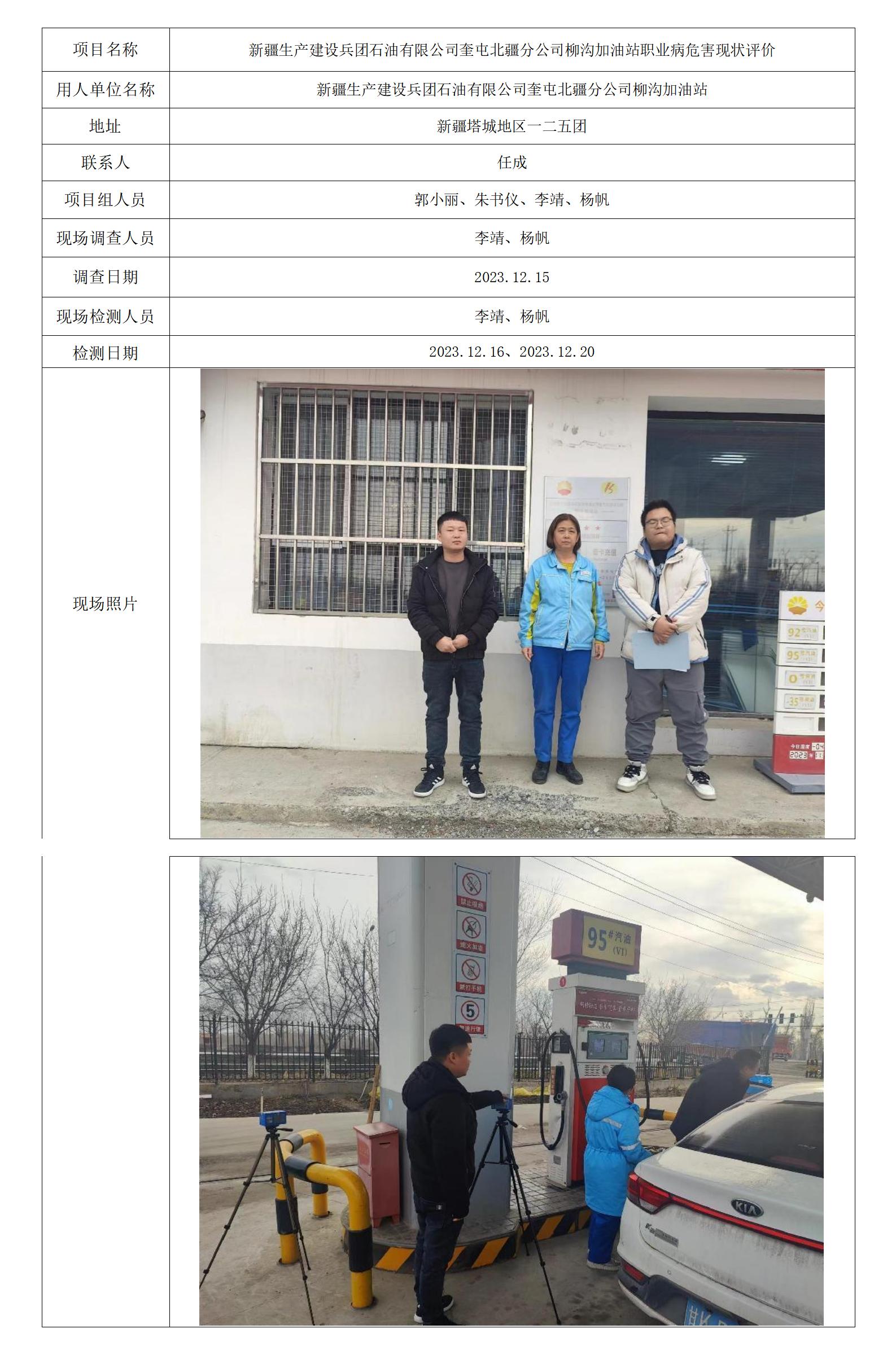 新疆生产建设兵团石油有限公司奎屯北疆分公司柳沟加油站职业病危害现状评价
