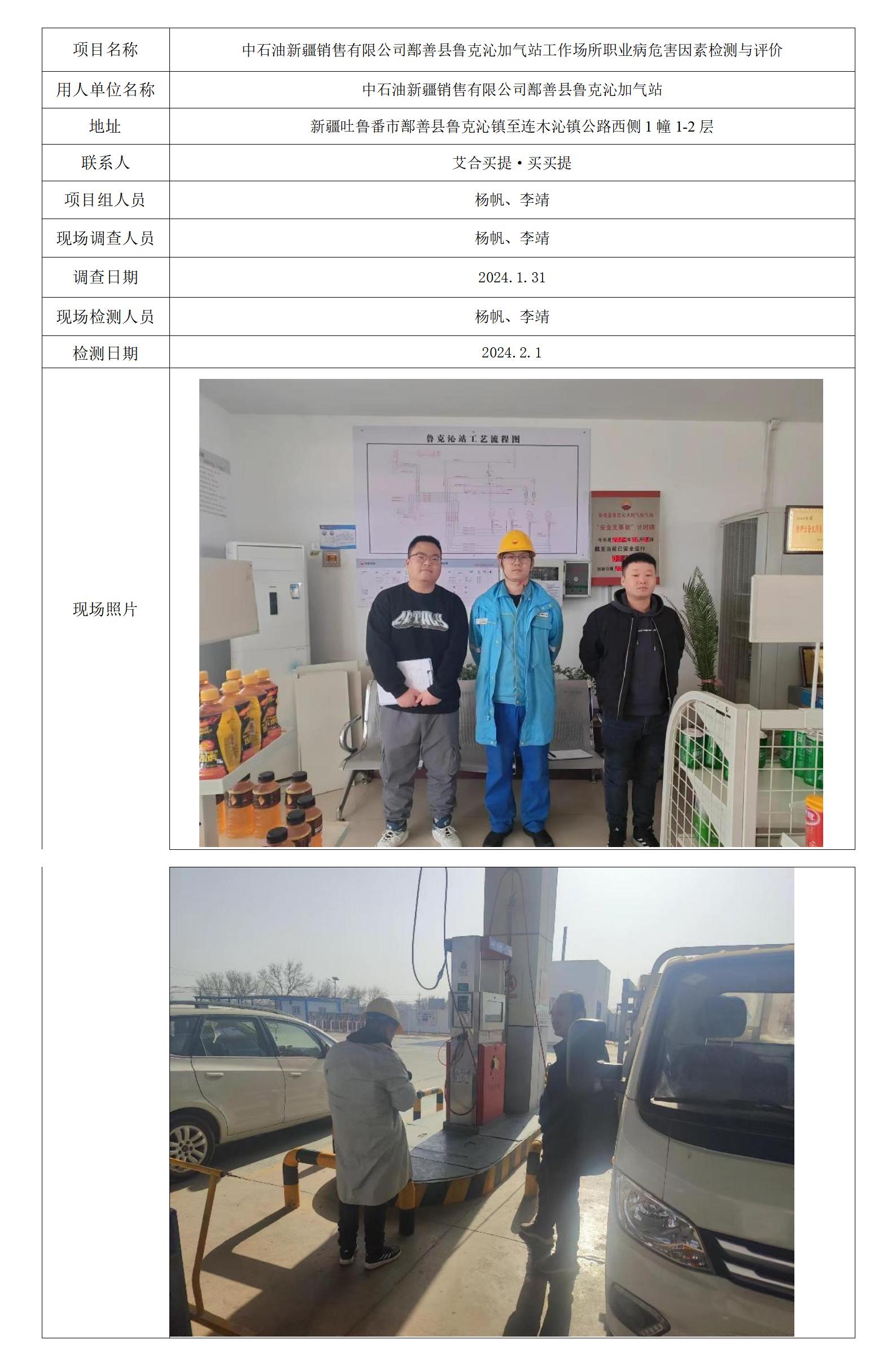 中石油新疆销售有限公司鄯善县鲁克沁加气站工作场所职业病危害因素检测与评价
