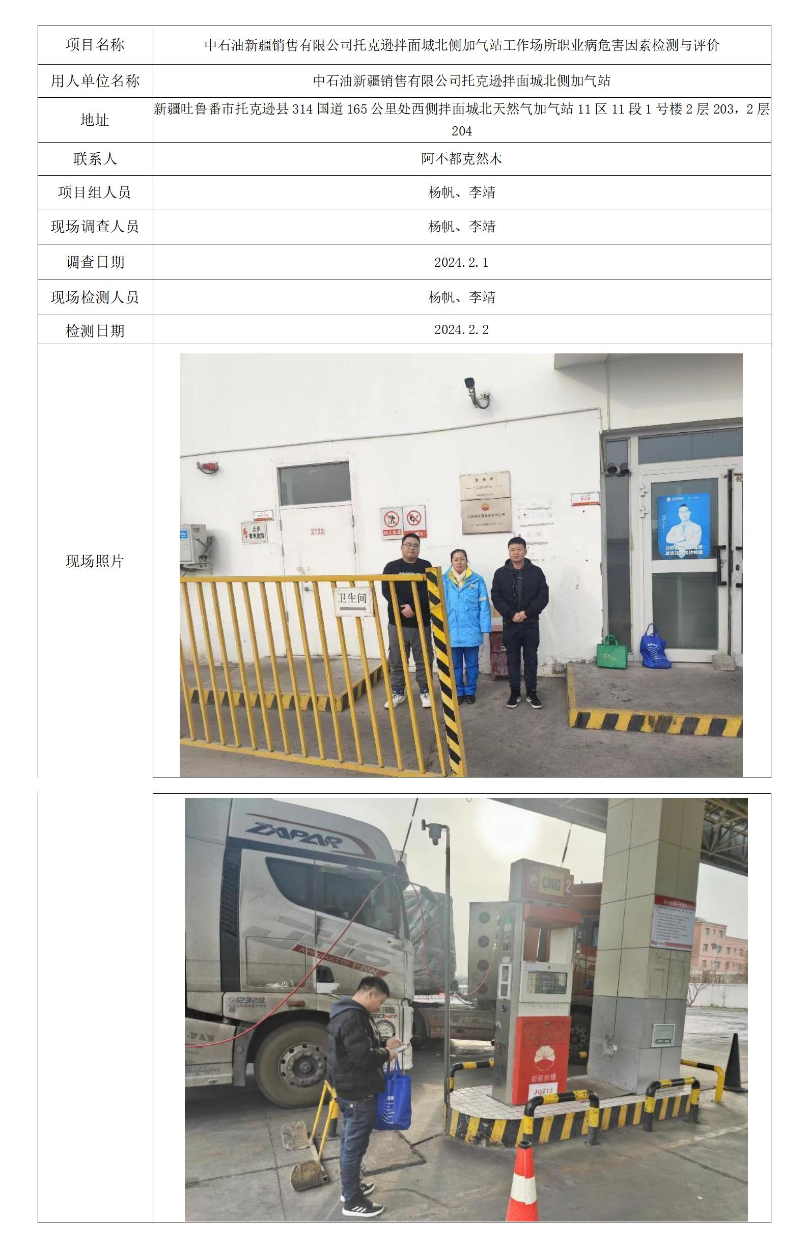 中石油新疆销售有限公司托克逊拌面城北侧加气站工作场所职业病危害因素检测与评价