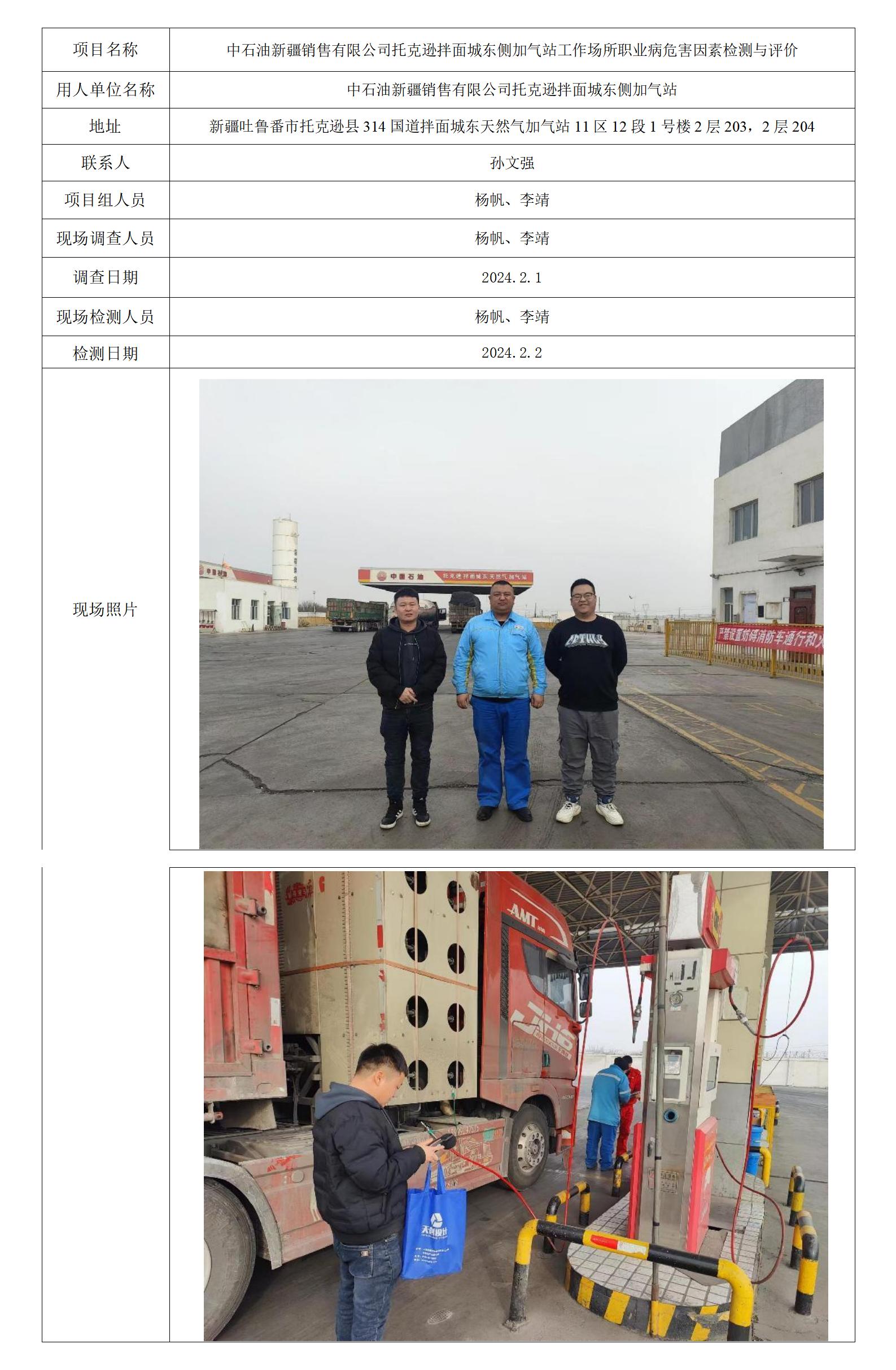 中石油新疆销售有限公司托克逊拌面城东侧加气站工作场所职业病危害因素检测与评价