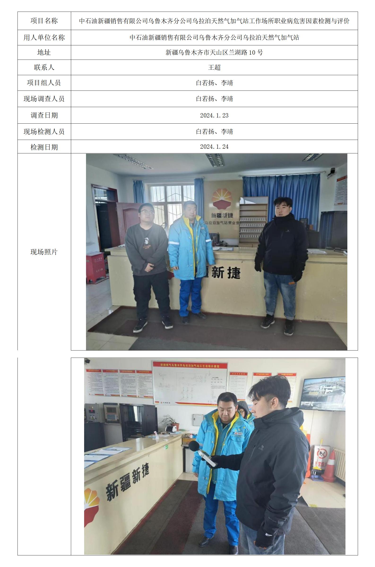 中石油新疆销售有限公司乌鲁木齐分公司乌拉泊天然气加气站工作场所职业病危害因素检测与评价 2024-02-22 18:36:30