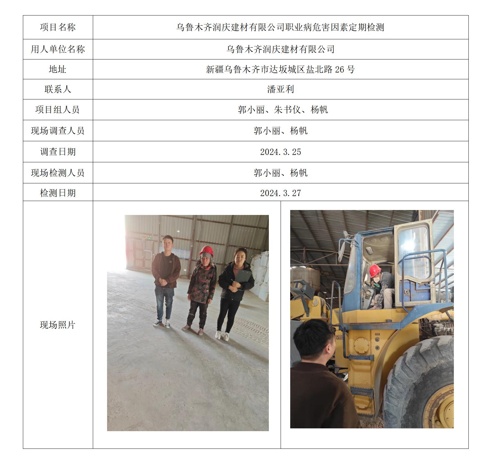 乌鲁木齐润庆建材有限公司职业病危害因素定期检测