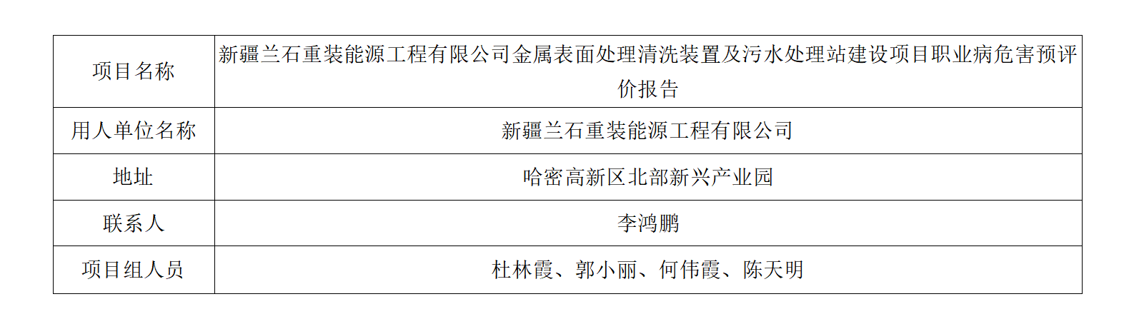 新疆兰石重装能源工程有限公司金属表面处理清洗装置及污水处理站建设项目职业病危害预评价 2024-02-20 11:20:21