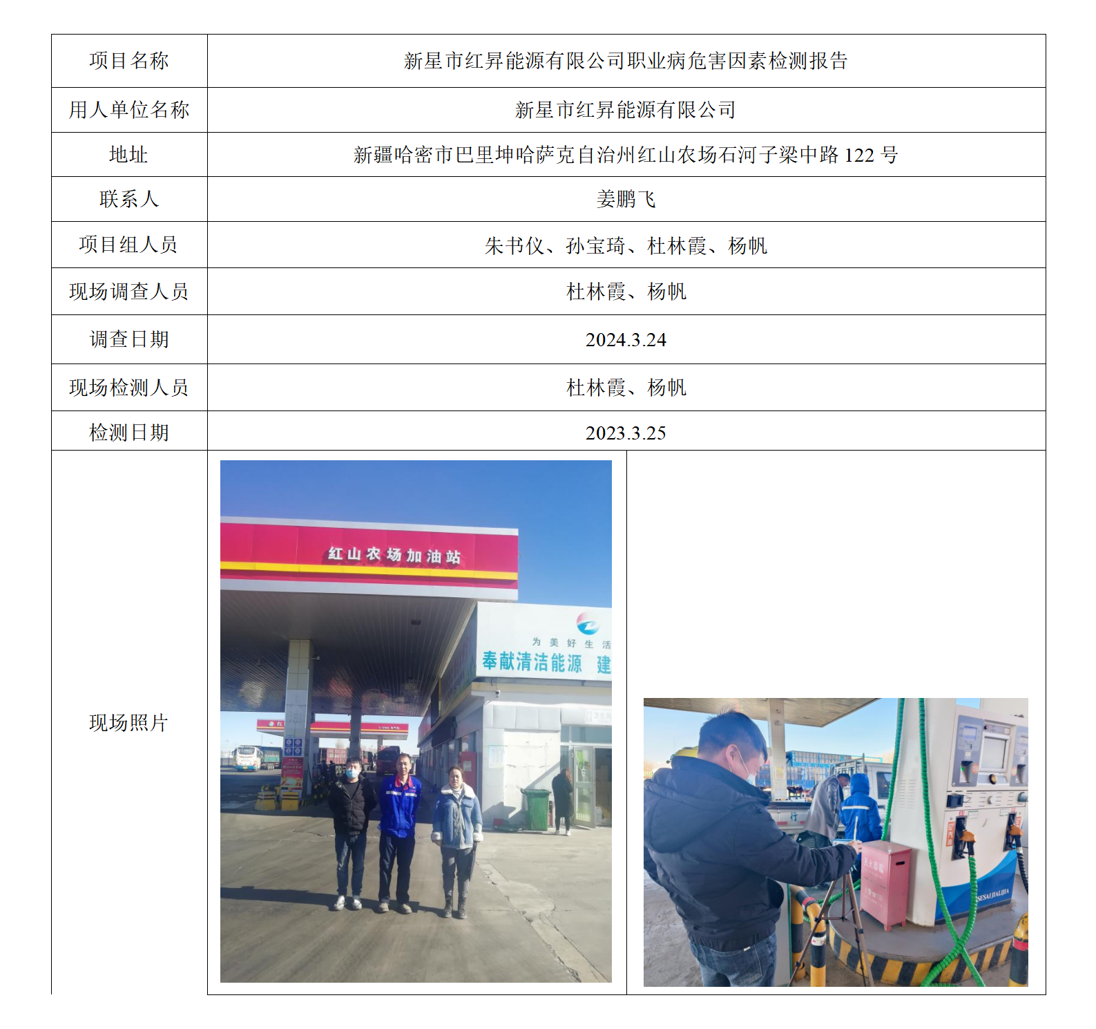 新星市红昇能源有限公司职业病危害因素检测报告