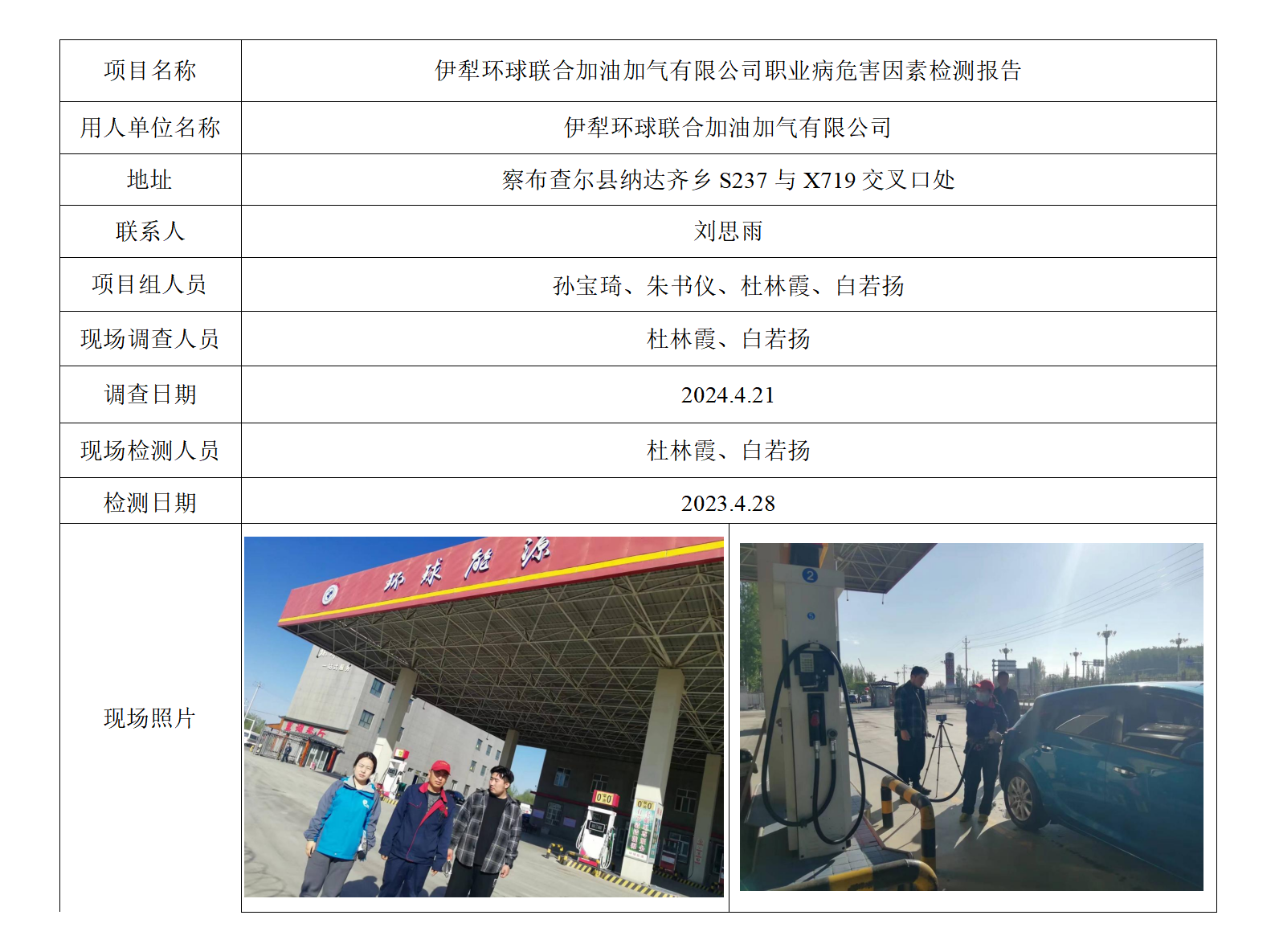 伊犁环球联合加油加气有限公司职业病危害因素检测报告