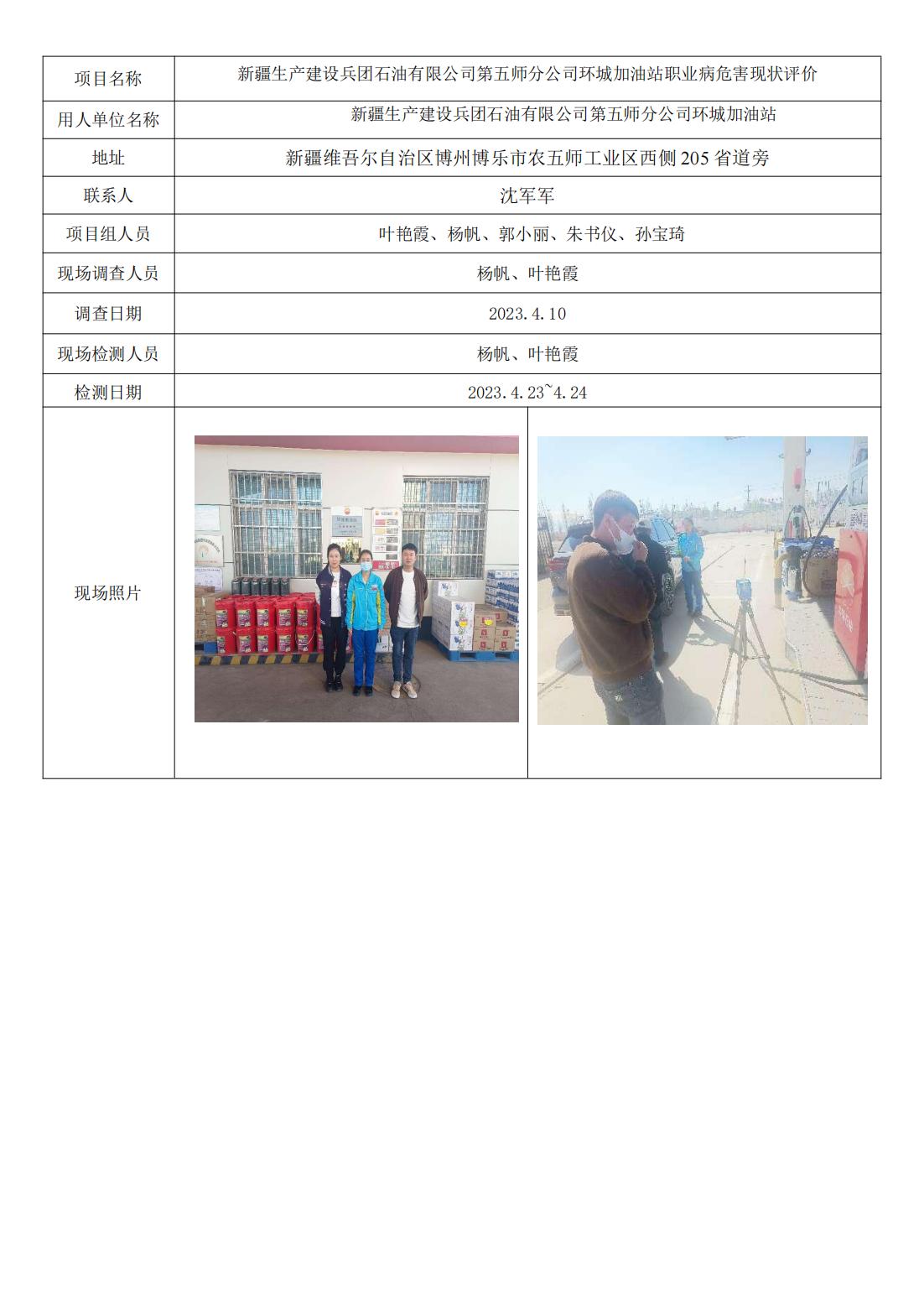 新疆生产建设兵团石油有限公司第五师分公司环城加油站职业病危害现状评价