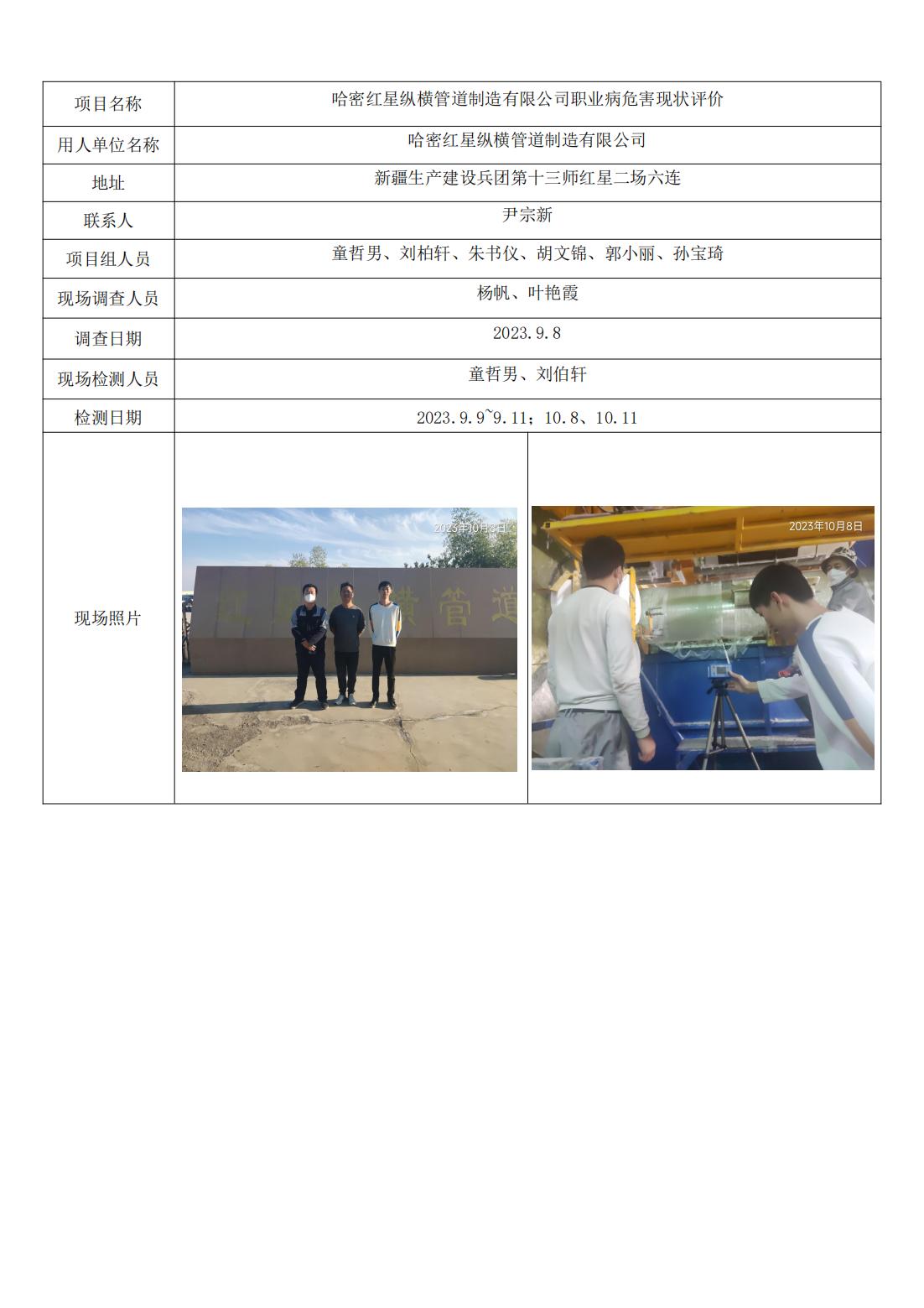 哈密红星纵横管道制造有限公司职业病危害现状评价