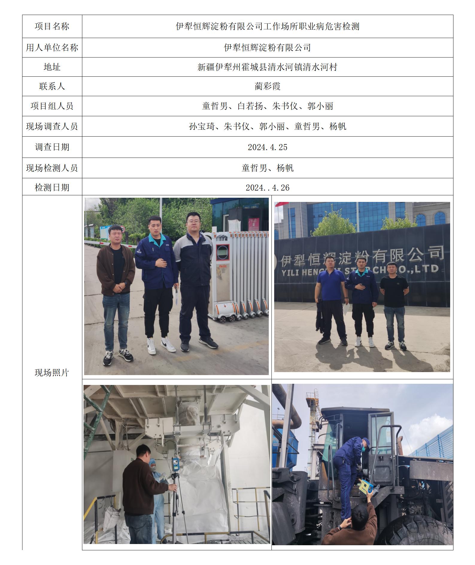 伊犁恒辉淀粉有限公司工作场所职业病危害因素检测