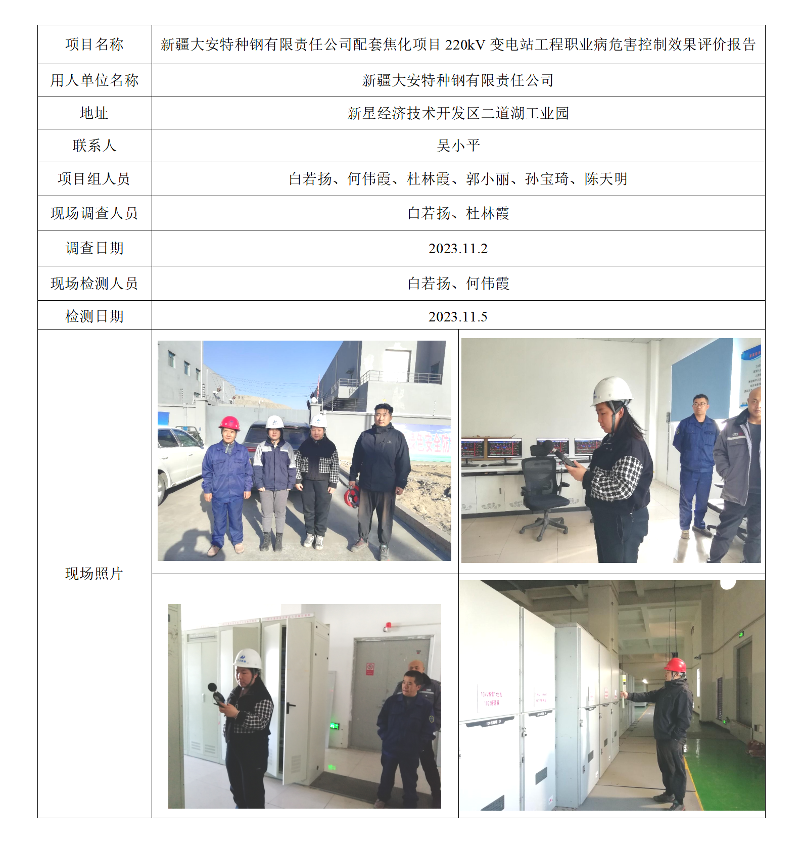 新疆大安特种钢有限责任公司配套焦化项目220kV变电站工程职业病危害控制效果评价报告