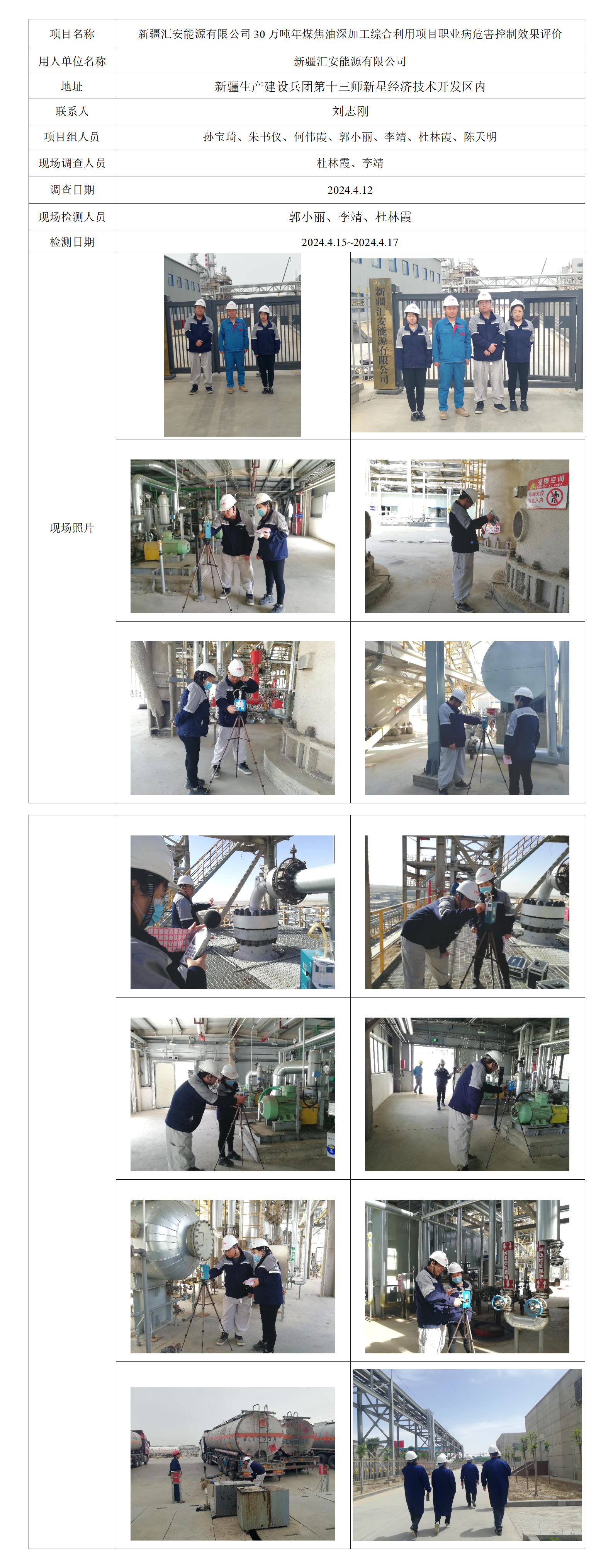 新疆汇安能源有限公司30万吨/年煤焦油深加工综合利用项目职业病危害控制效果评价