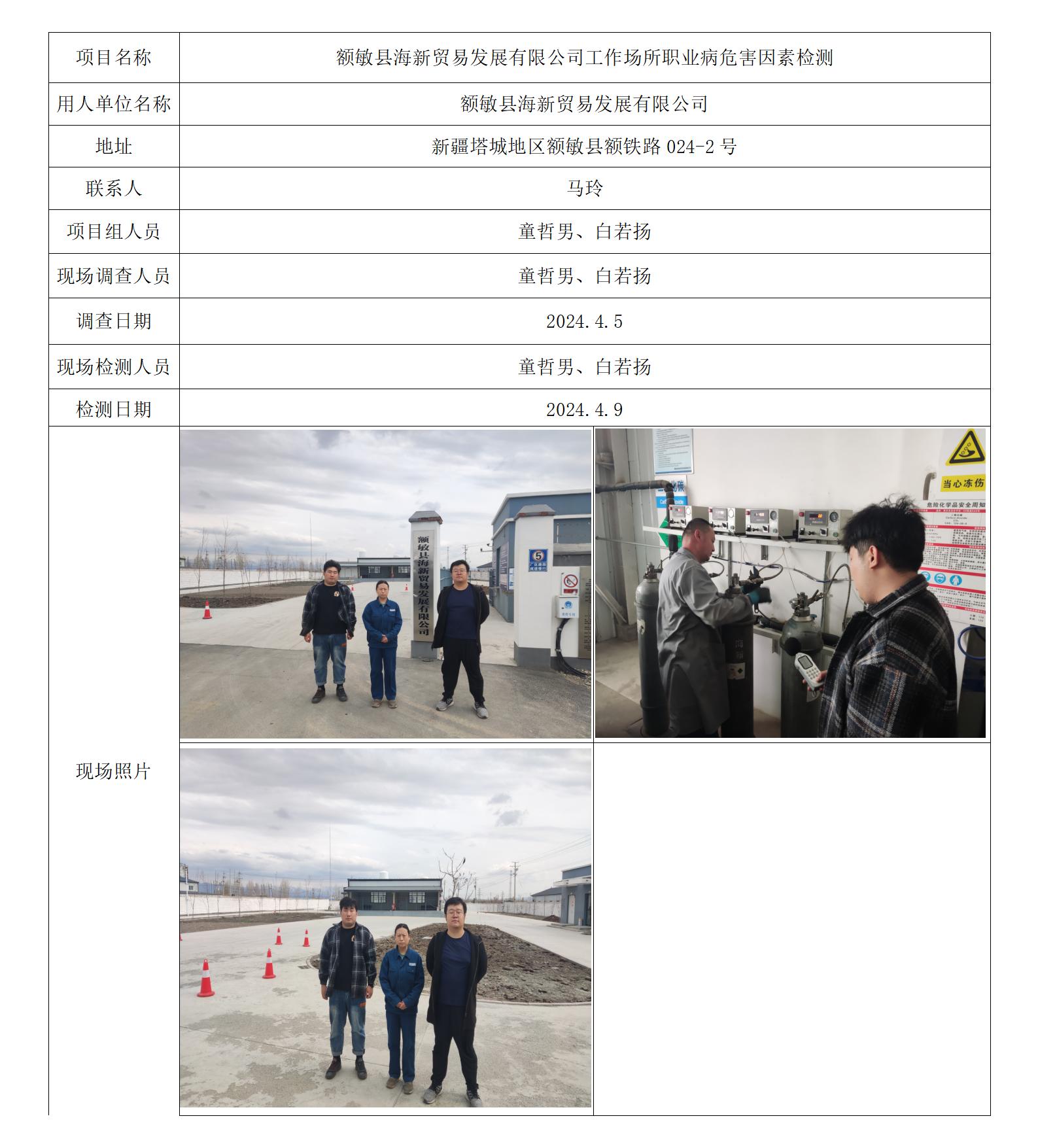 额敏县海新贸易发展有限公司工作场所职业病危害因素检测