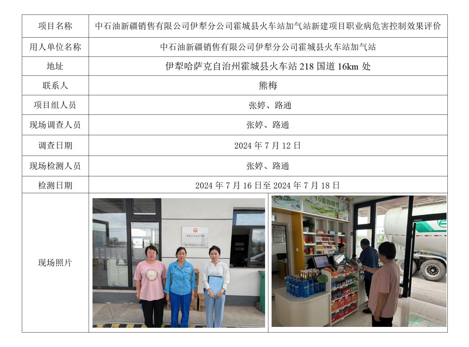 中石油新疆销售有限公司伊犁分公司霍城县火车站加气站新建项目职业病危害控制效果评价 2024-09-06 10:37:34