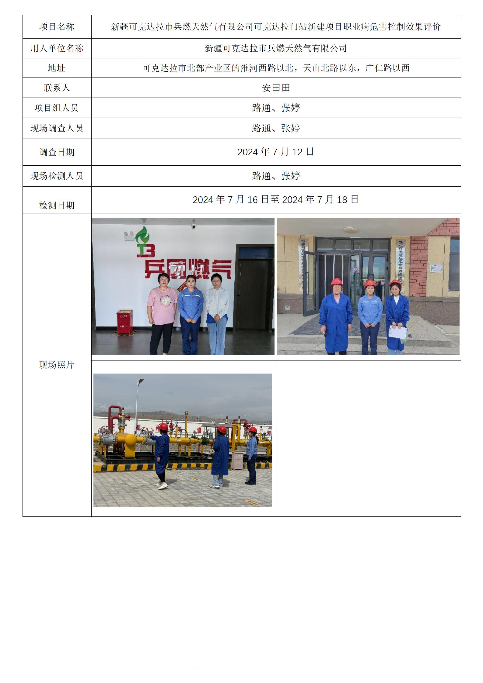 新疆可克达拉市兵燃天然气有限公司可克达拉市门站新建项目职业病危害控制效果评价