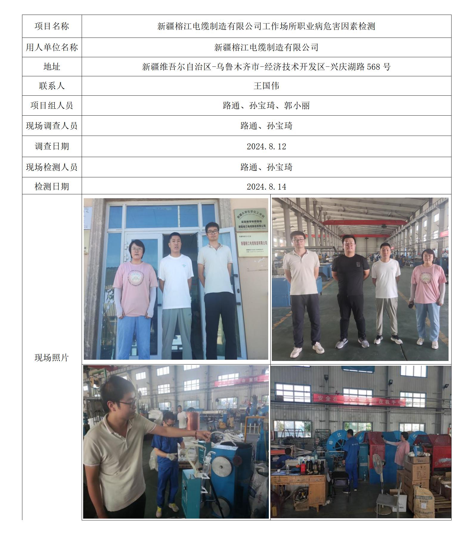 新疆榕江电缆制造有限公司工作场所职业病危害因素检测