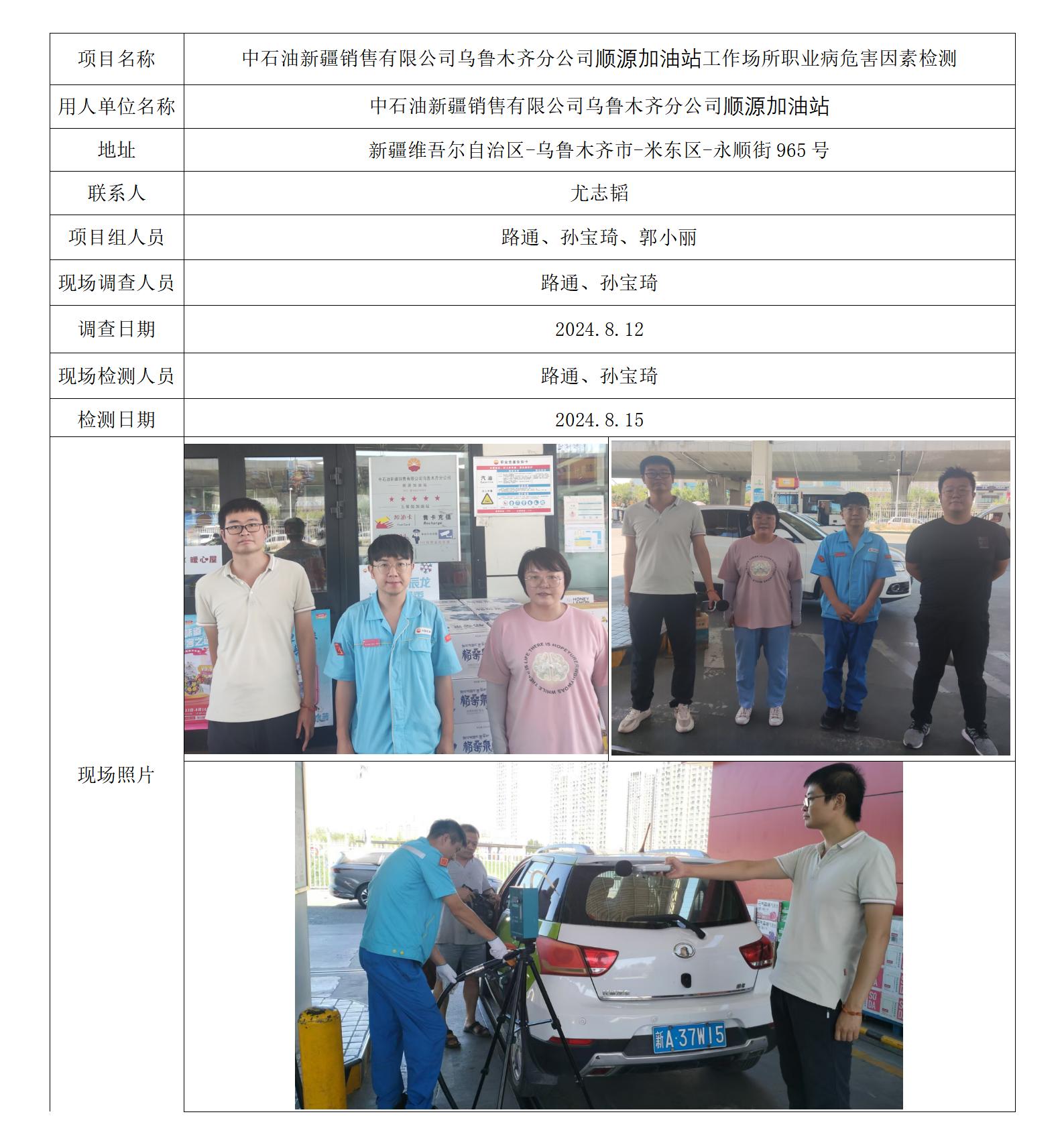 新疆中石油新疆销售有限公司乌鲁木齐分公司顺源加油站工作场所职业病危害因素检测