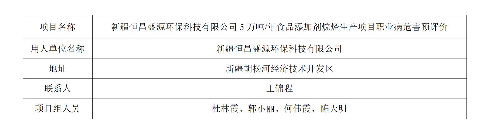 新疆恒昌盛源环保科技有限公司5万吨年食品添加剂烷烃生产项目职业病危害预评