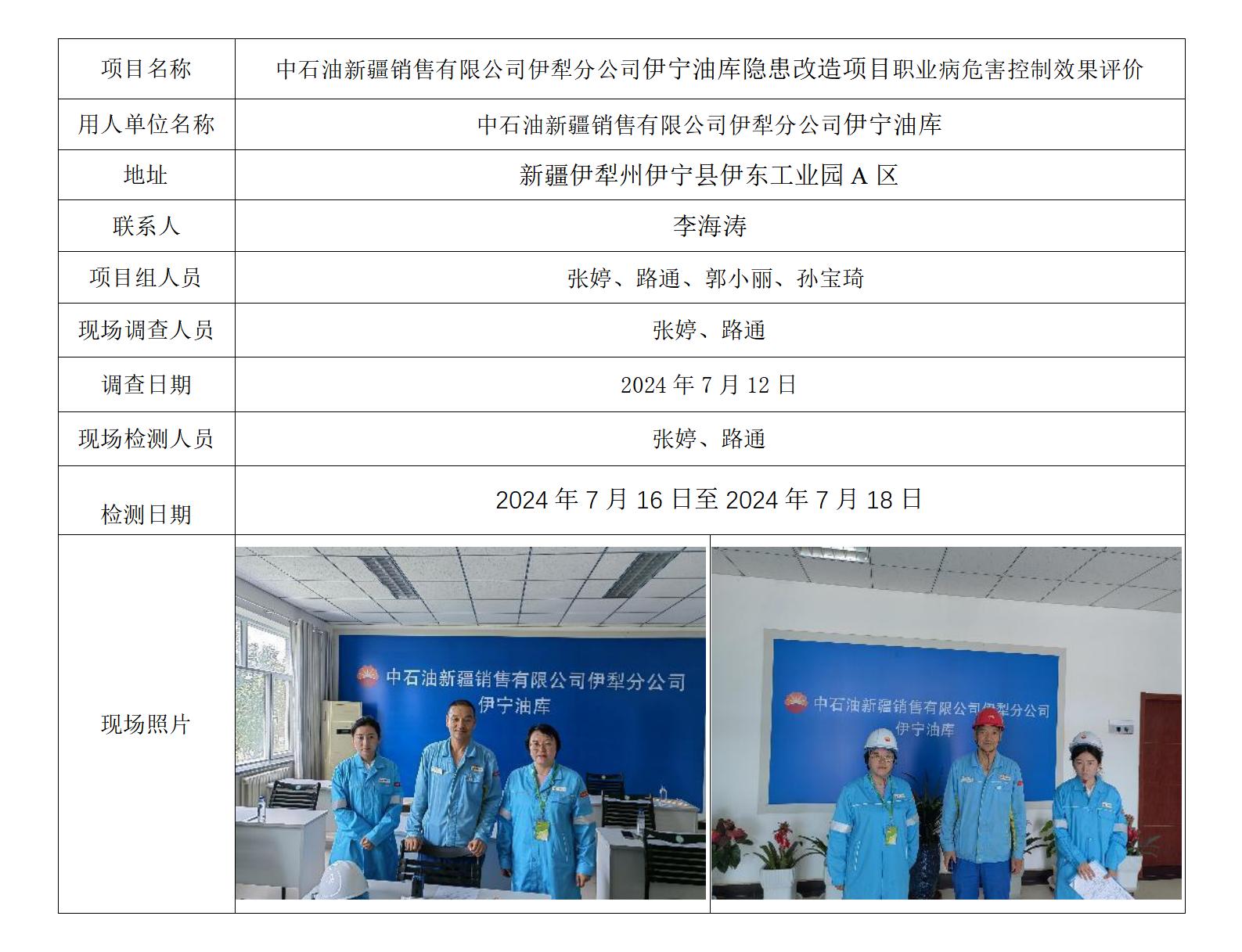 中石油新疆销售有限公司伊犁分公司伊宁油库隐患改造项目职业病危害控制效果评价