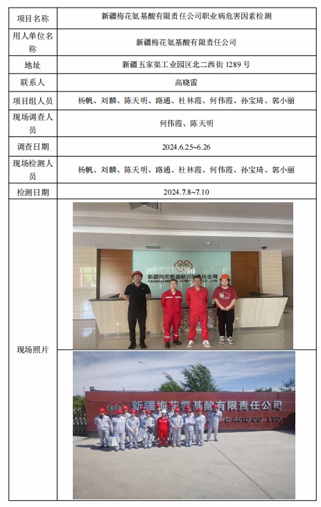 新疆梅花氨基酸有限责任公司工作场所职业病危害因素检测