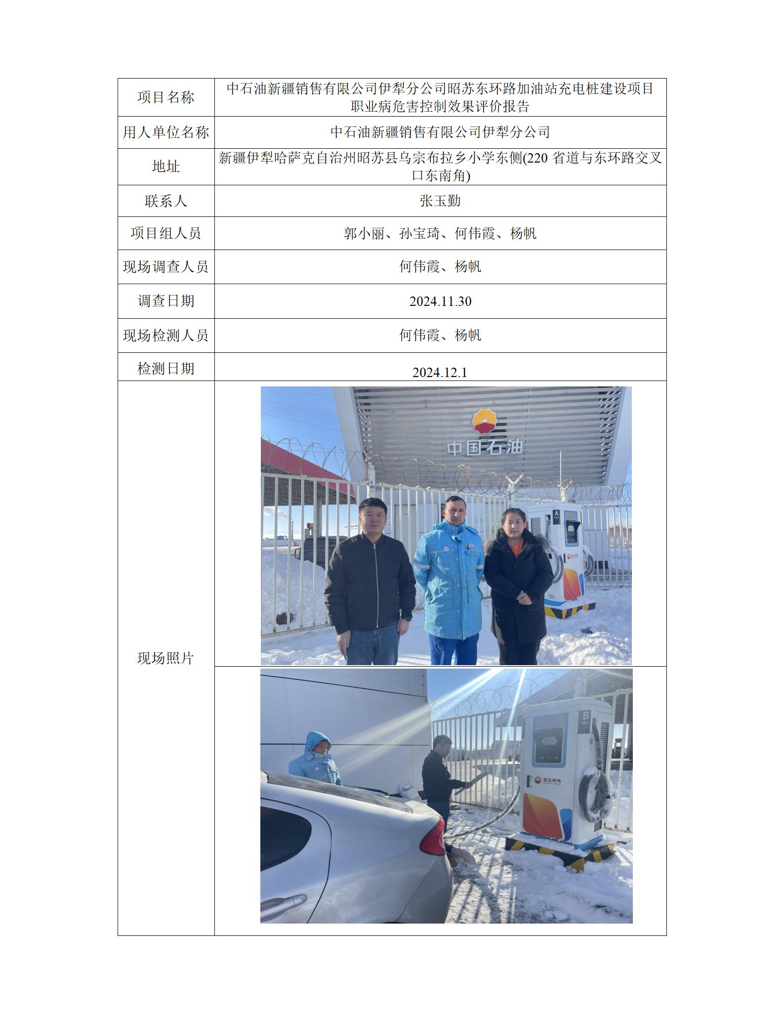 中石油新疆销售有限公司伊犁分公司昭苏东环路加油站充电桩建设项目职业病危害控制效果评价 2024-12-31 11:29:09