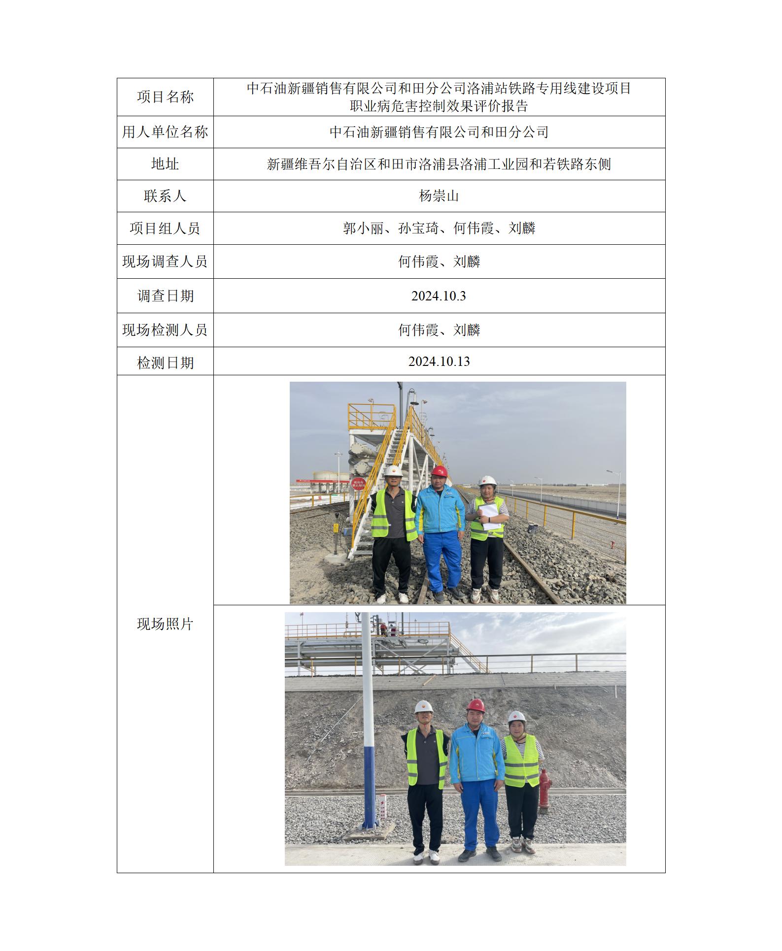 中石油新疆销售有限公司和田分公司洛浦站铁路专用线建设项目 职业病危害控制效果评价报告 2025-01-10 10:08:05