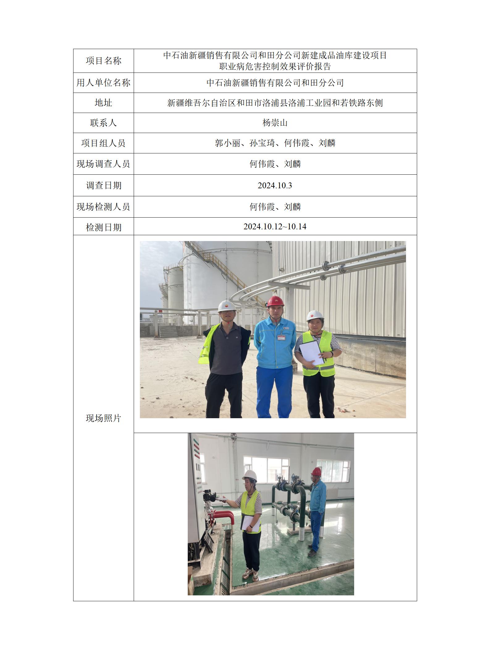 中石油新疆销售有限公司和田分公司新建成品油库建设项目职业病危害控制效果评价报告