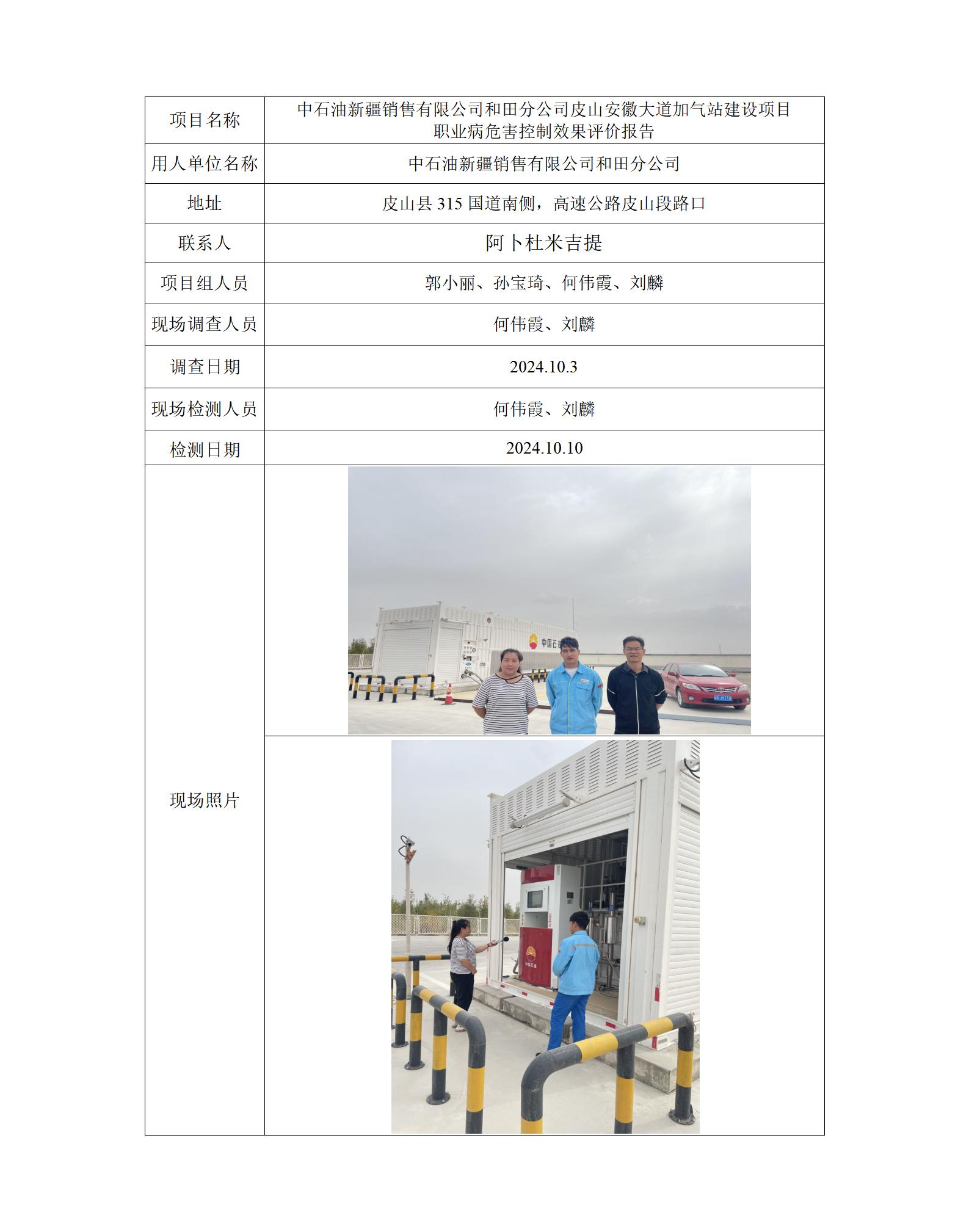 中石油新疆销售有限公司和田分公司安徽大道加气站建设项目职业病危害控制效果评价报告 2025-01-10 10:25:32