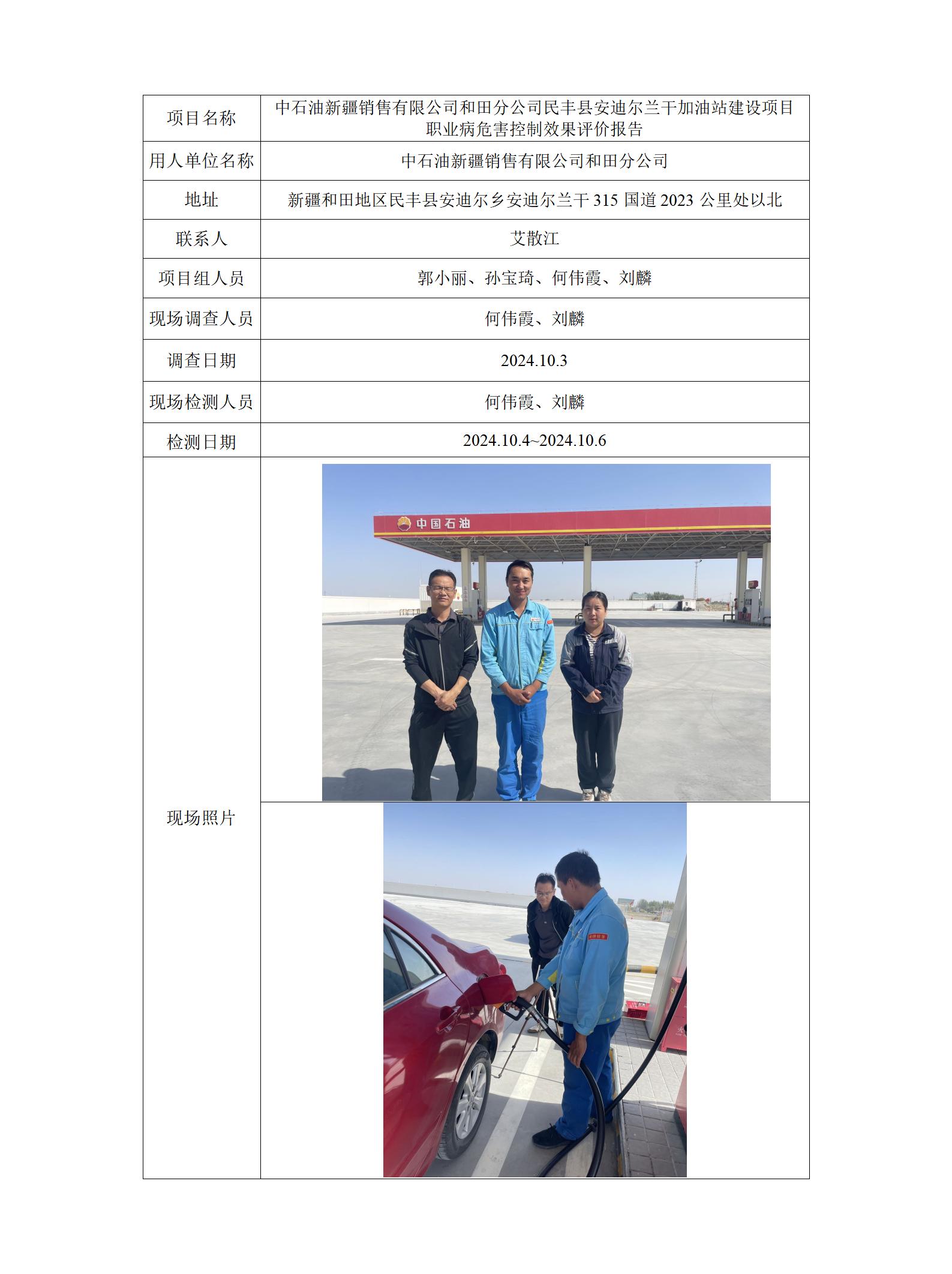 中石油新疆销售有限公司和田分公司民丰县安迪尔兰干加油站建设项目职业病危害控制效果评价报告 2025-01-10 12:08:25