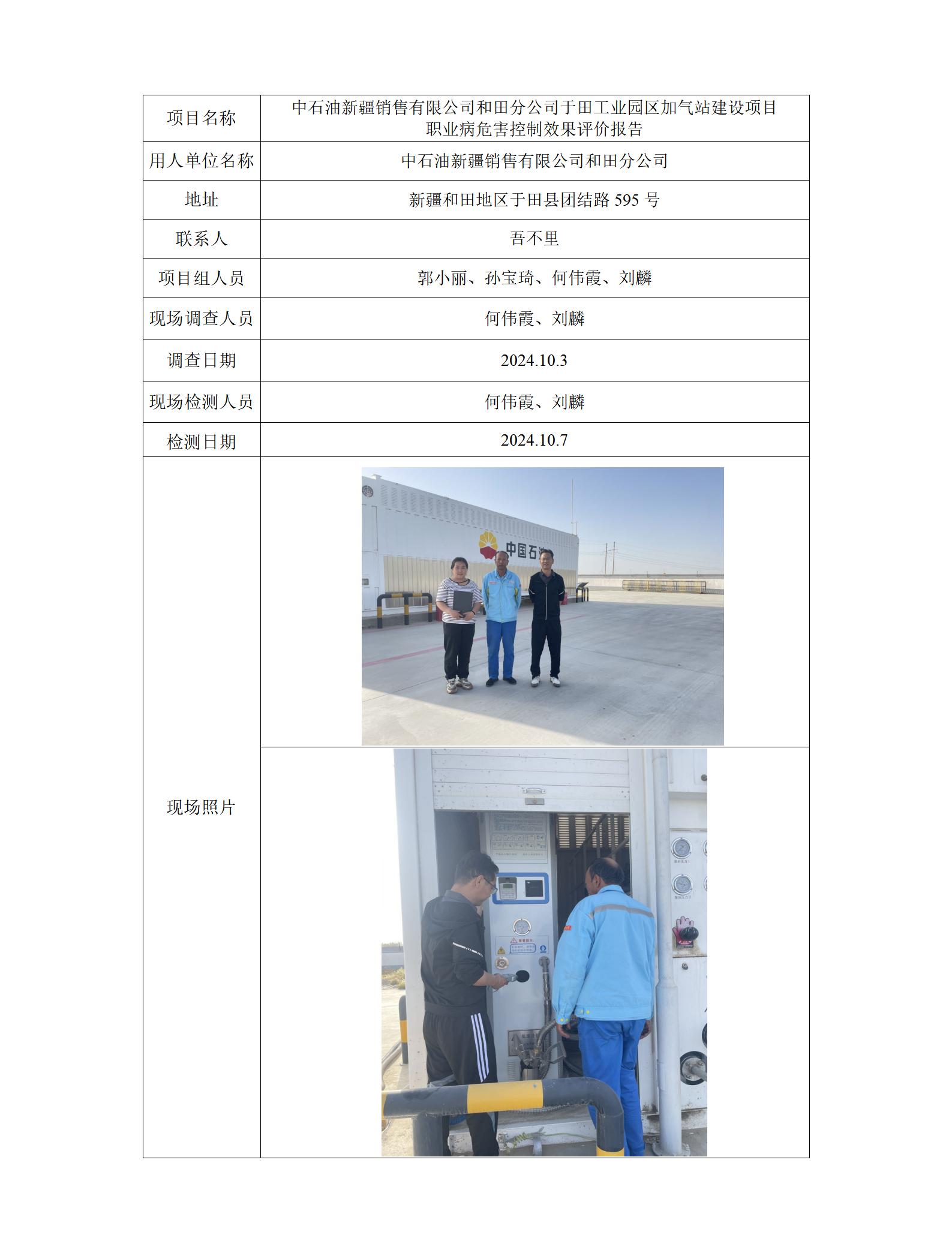 中石油新疆销售有限公司和田分公司于工业园区加气站建设项目职业病危害控制效果评价报告 2025-01-10 12:14:39