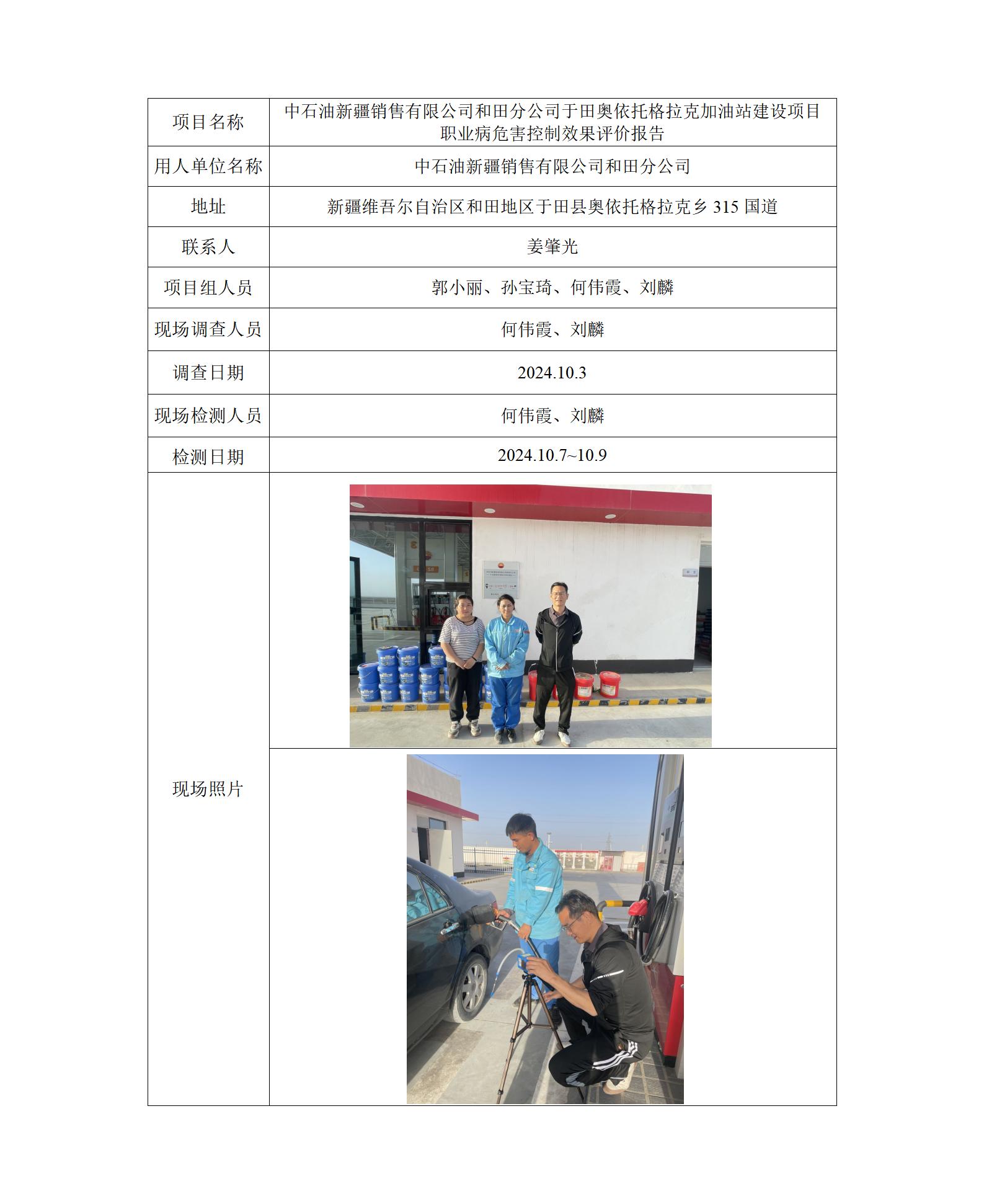 中石油新疆销售有限公司和田分公司于田奥依托格拉克加油站建设项目职业病危害控制效果评价报告 2025-01-10 12:35:39