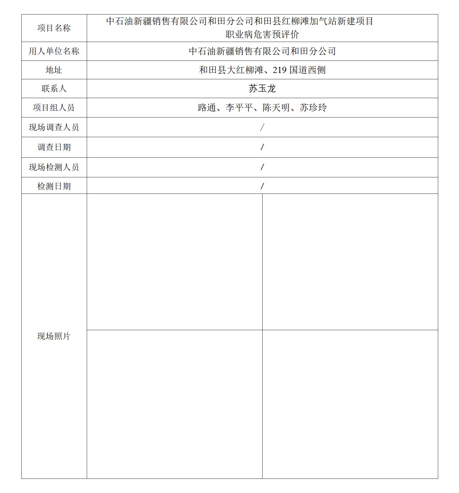 中石油新疆销售有限公司和田红柳滩LNG新建项目职业病危害预评价