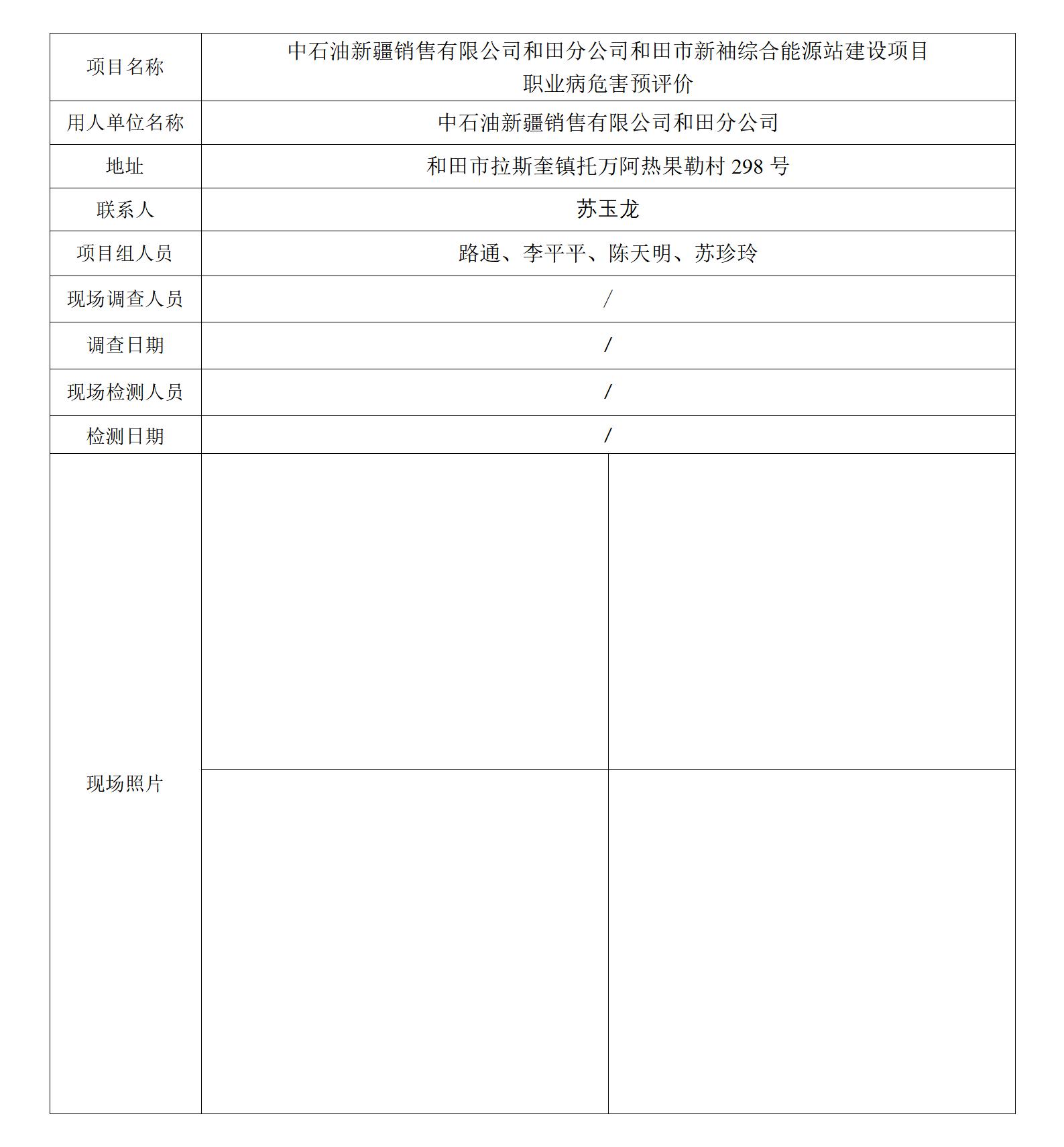 中石油新疆销售有限公司和田分公司和田新袖综合能源站职业病危害预评价