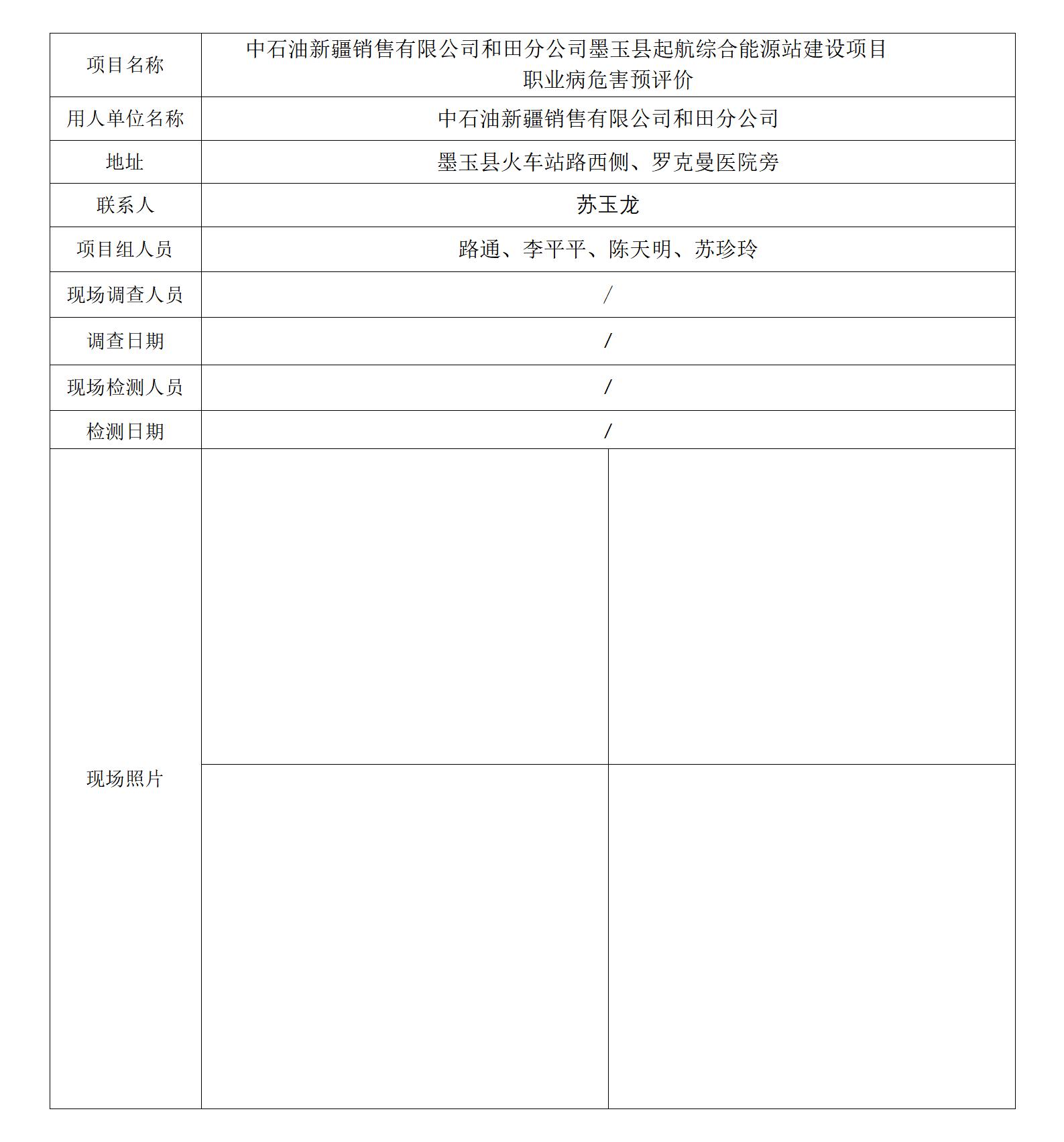 中石油新疆销售有限公司和田分公司墨玉县起航综合能源站职业病危害预评价
