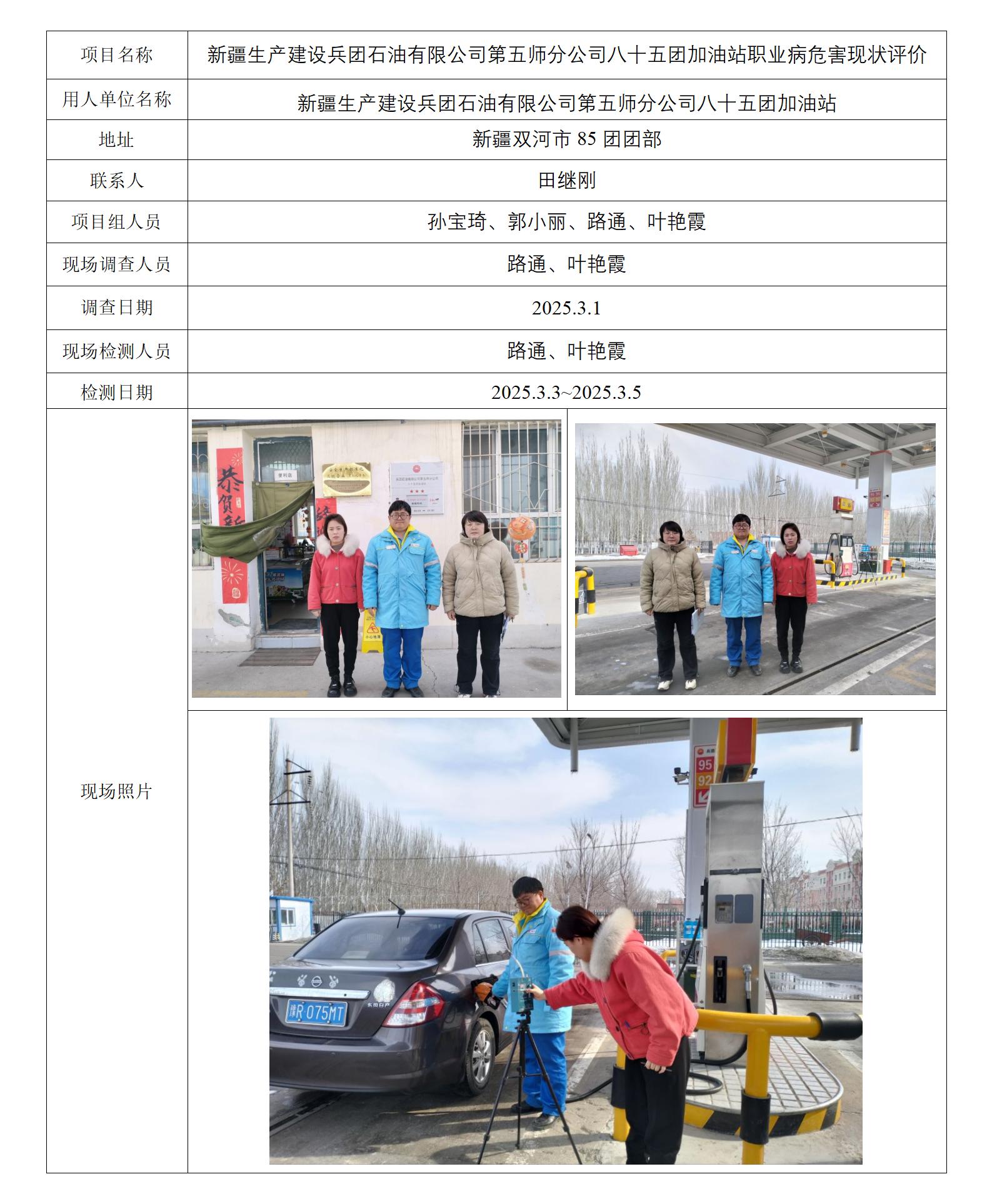 新疆生产建设兵团石油有限公司第五师分公司85团加油站职业病危害现状评价
