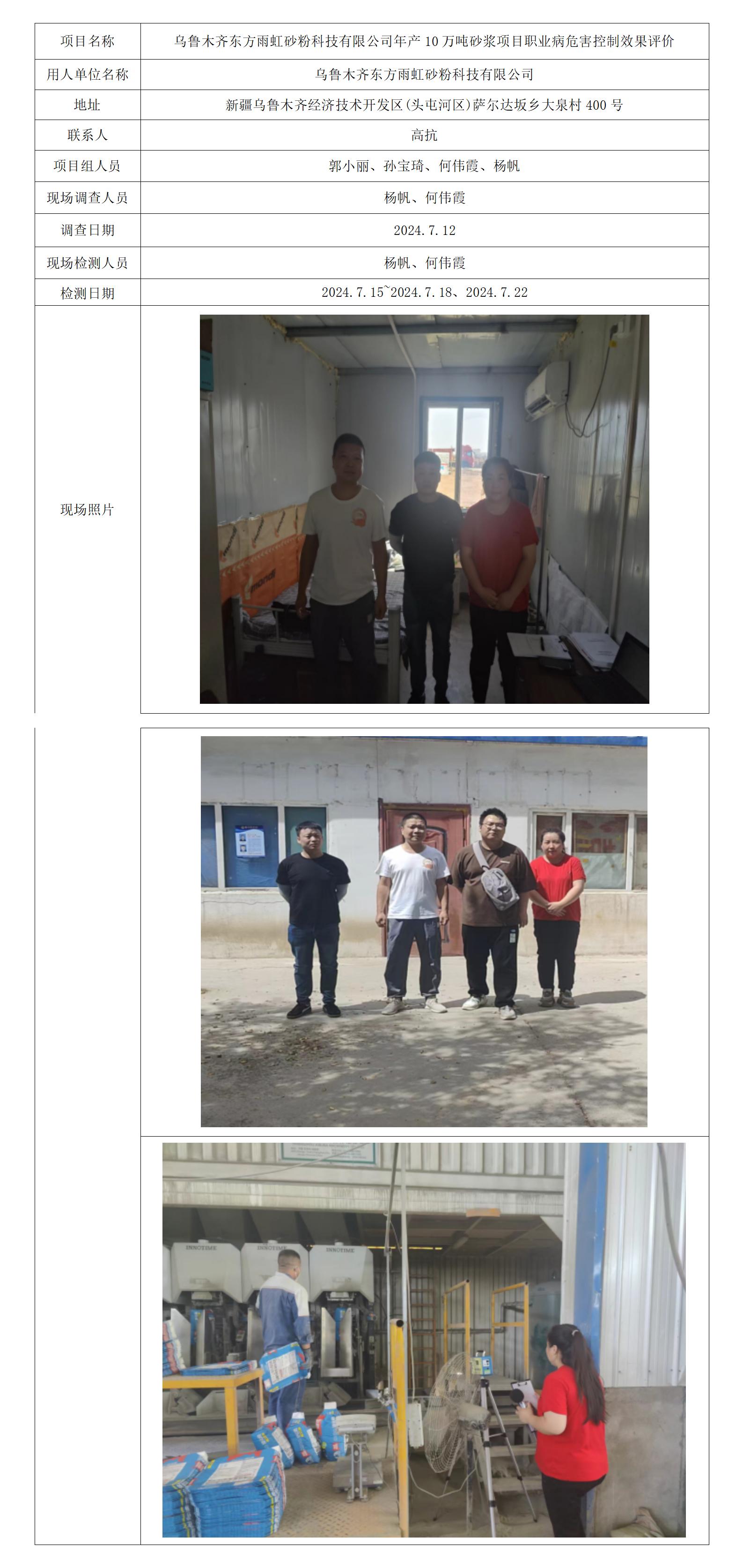 乌鲁木齐东方雨虹砂粉科技有限公司年产10万吨砂浆项目职业病危害控制效果评价