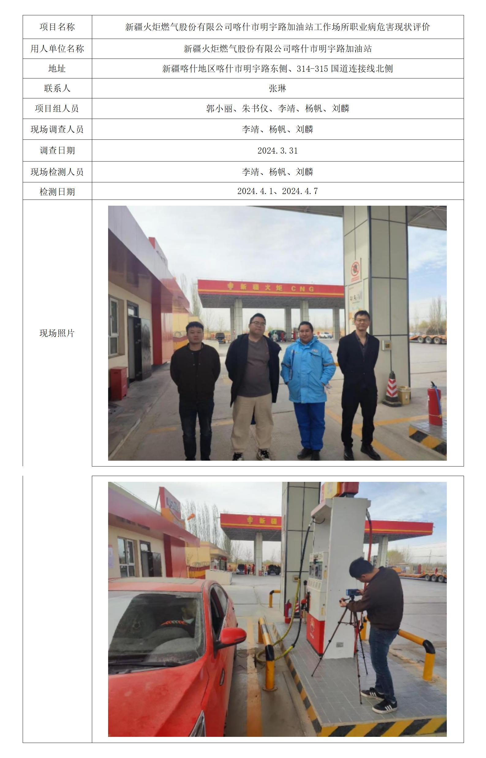 新疆火炬燃气股份有限公司喀什市明宇路加油站工作场所职业病危害现状评价