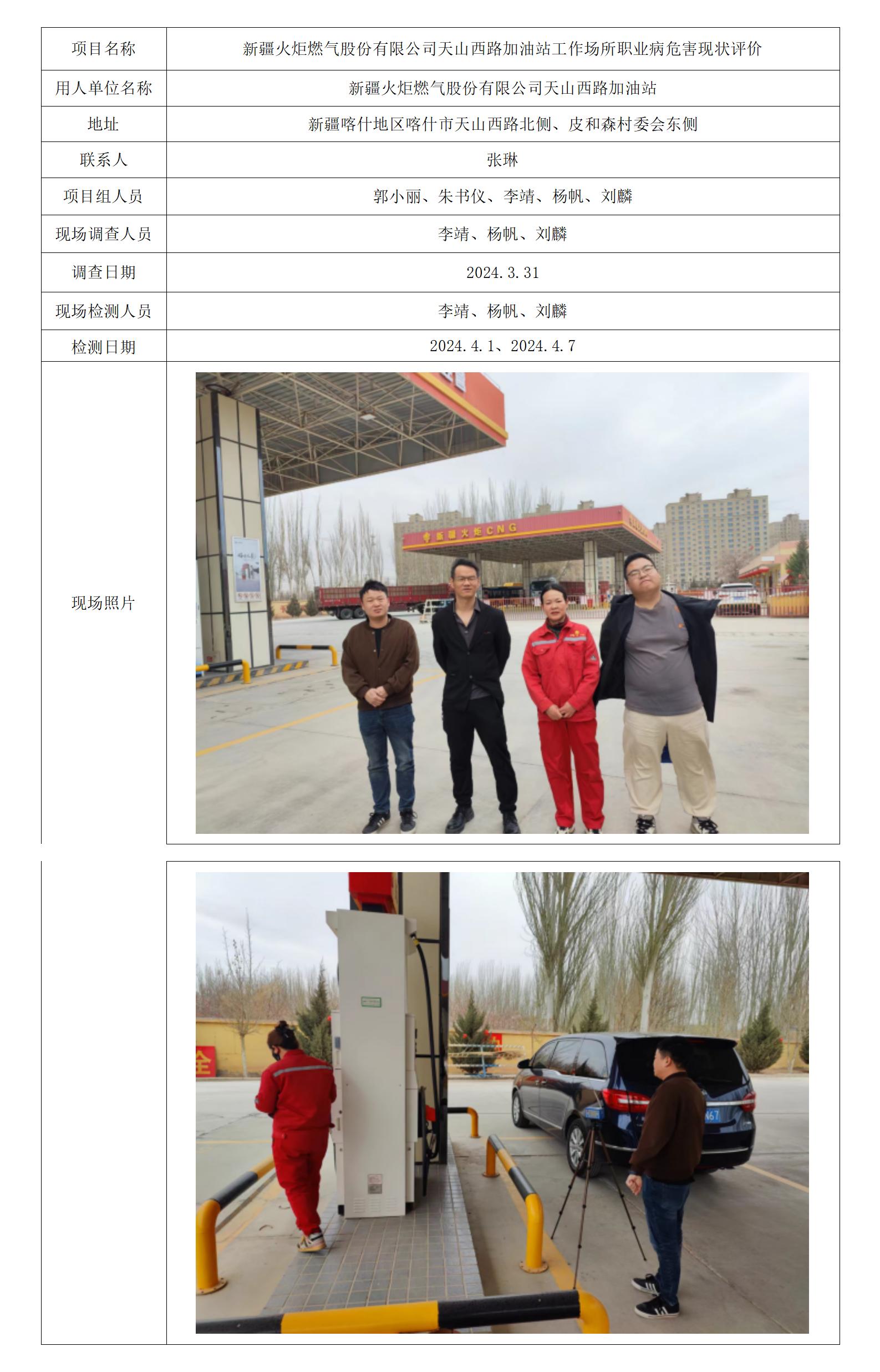 新疆火炬燃气股份有限公司天山西路加油站工作场所职业病危害现状评价