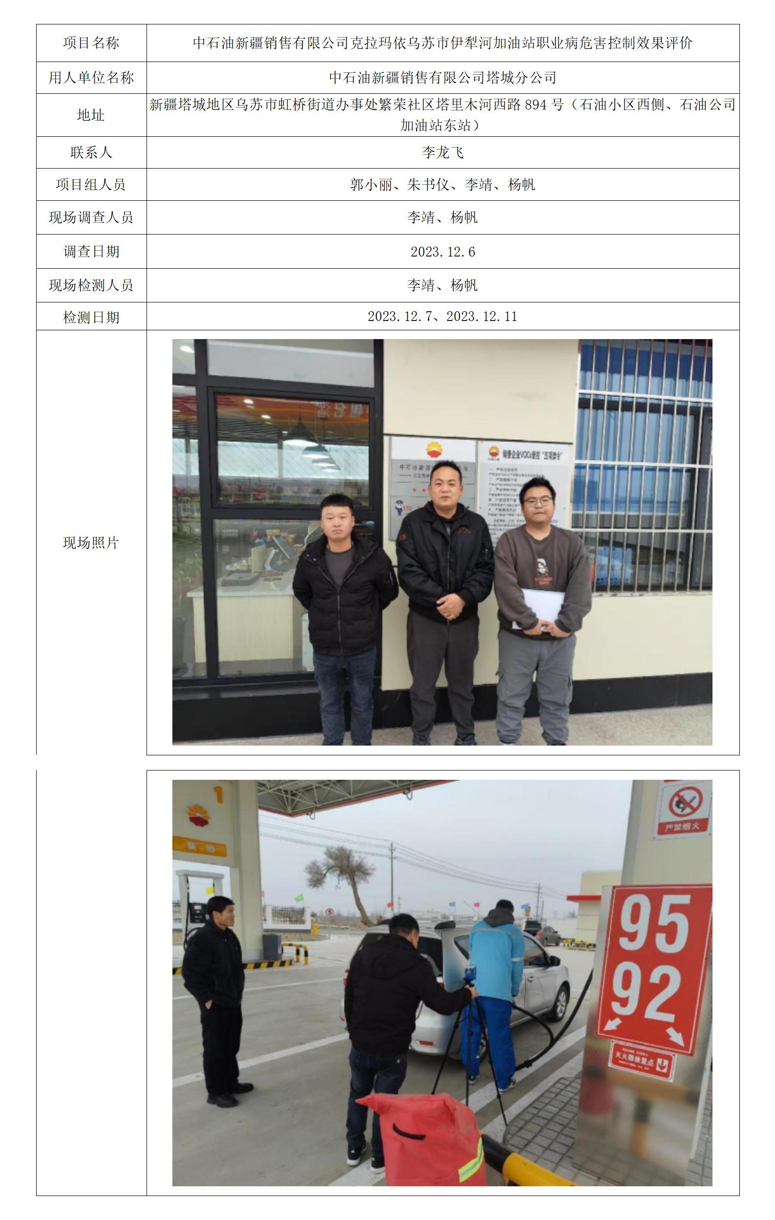 中石油新疆销售有限公司克拉玛依乌苏市伊犁河加油站职业病危害控制效果评价