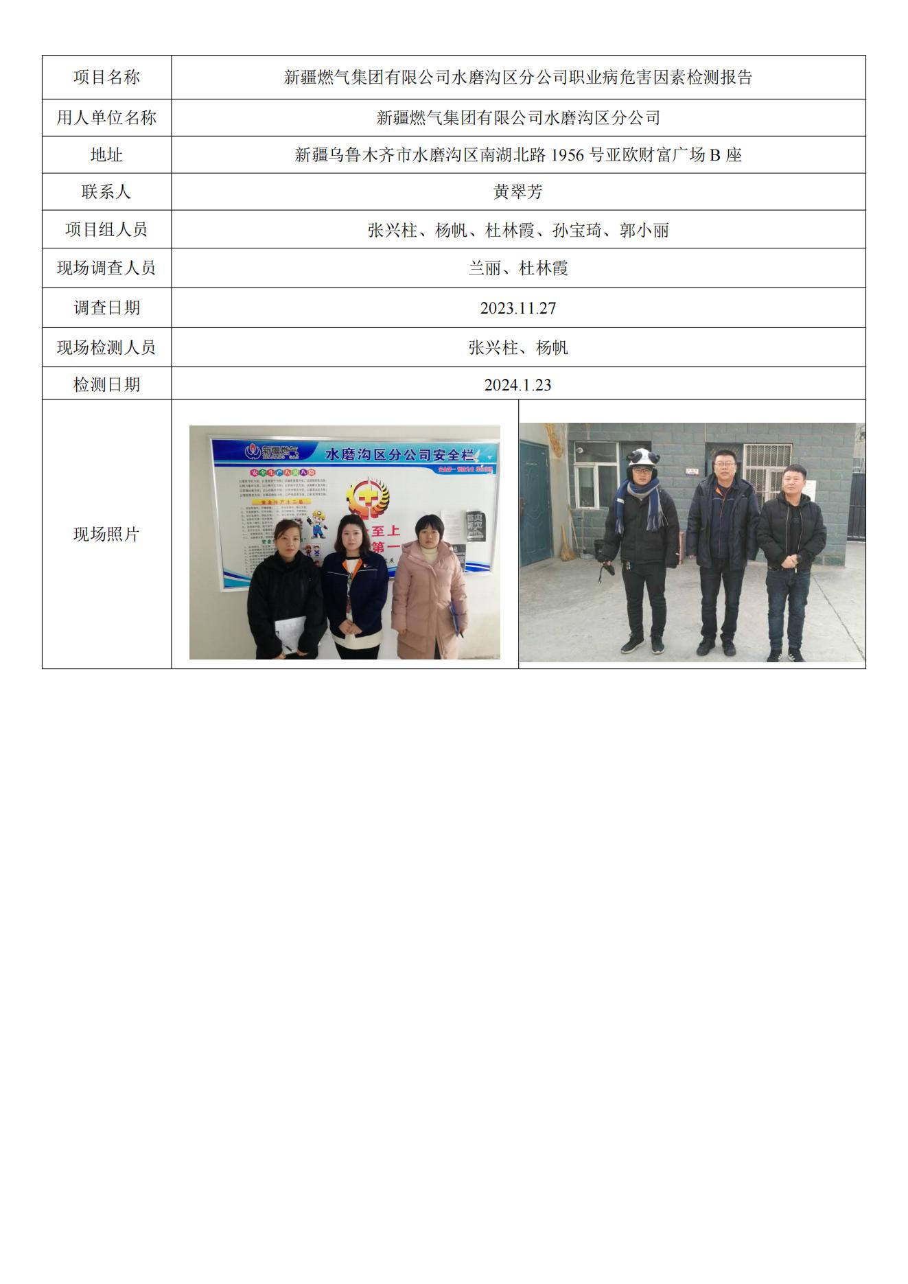 新疆燃气集团有限公司水磨沟区分公司职业病危害因素检测报告