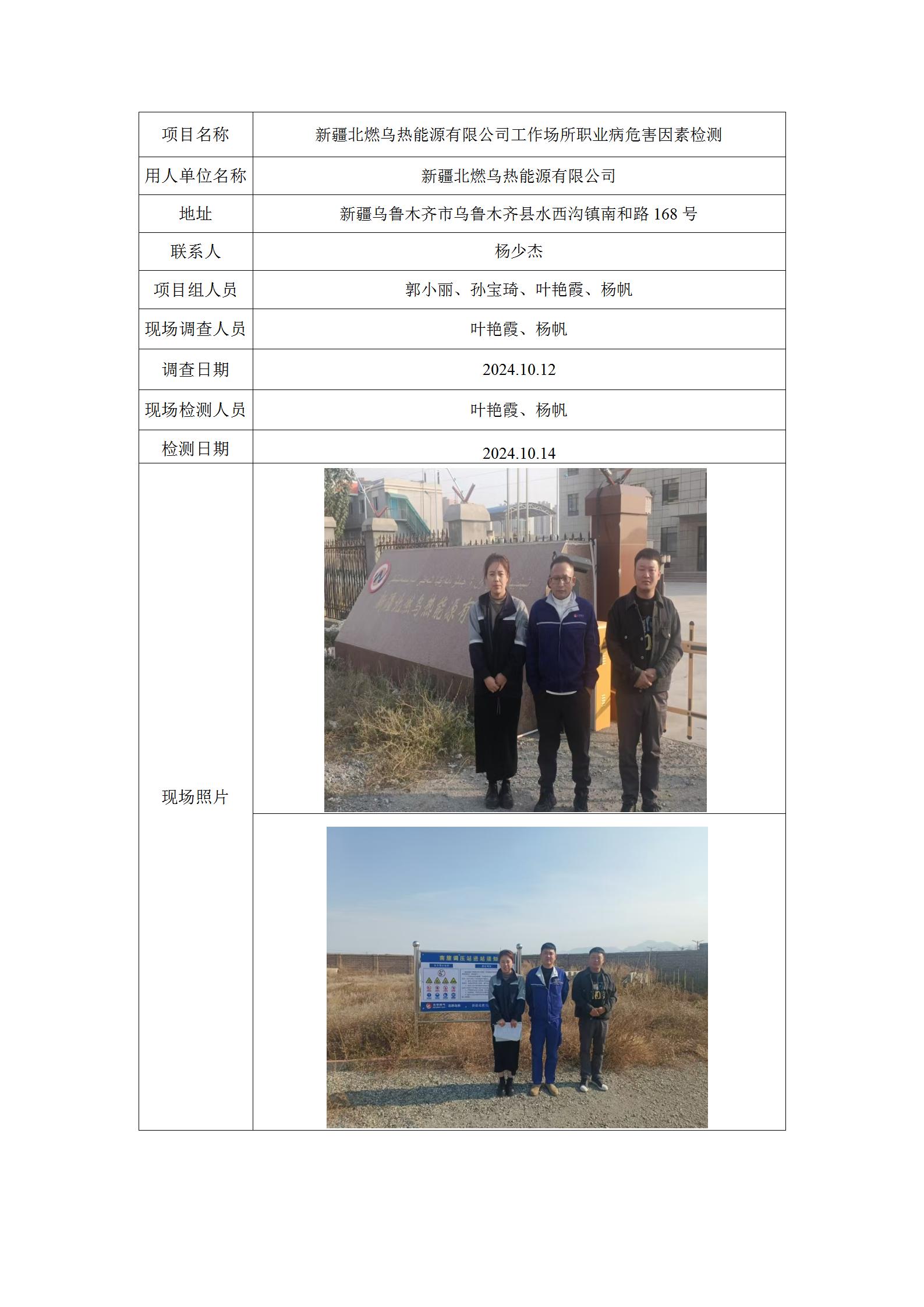 新疆北燃乌热能源有限公司工作场所职业病危害因素检测