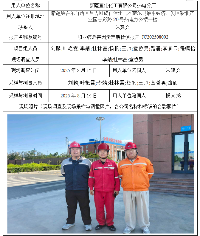 新疆宜化化工有限公司热电分厂职业病危害因素定期检测