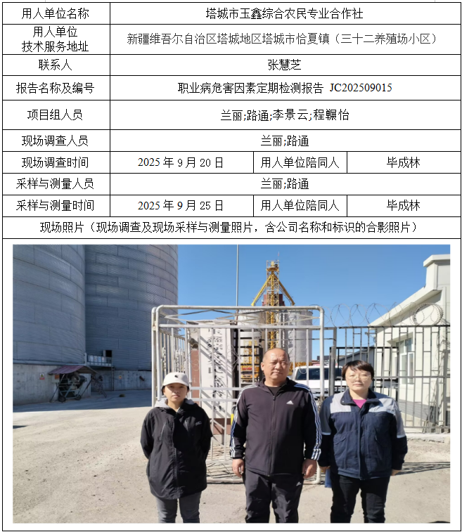 塔城市玉鑫综合农民专业合作社职业病危害因素定期检测
