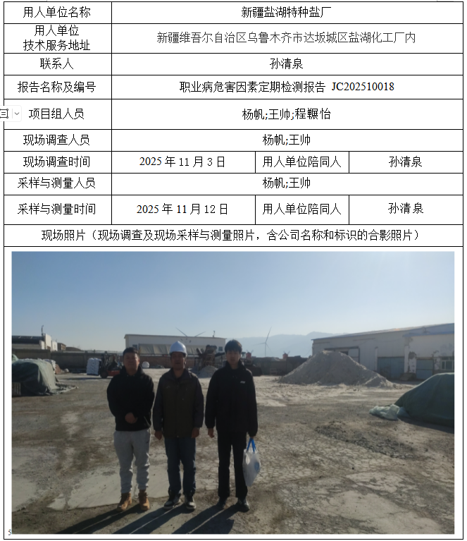 新疆盐湖特种盐厂职业病危害因素定期检测