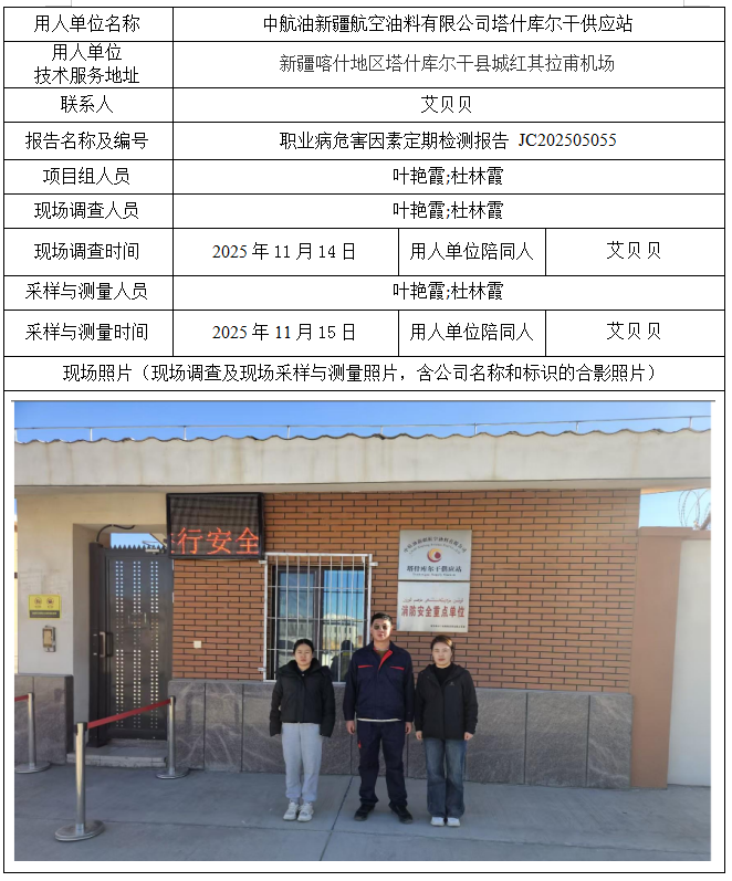 中航油新疆航空油料有限公司塔什库尔干供应站职业病危害因素定期检测